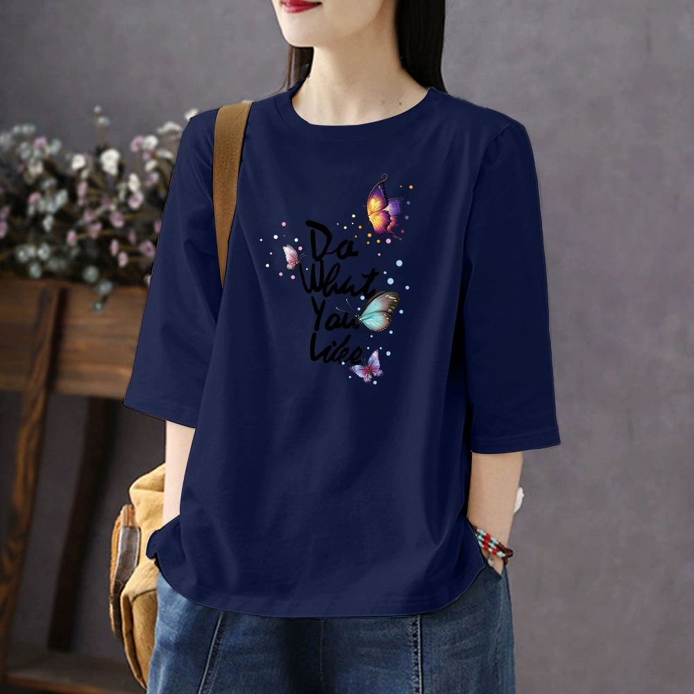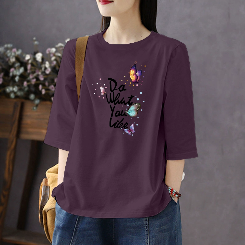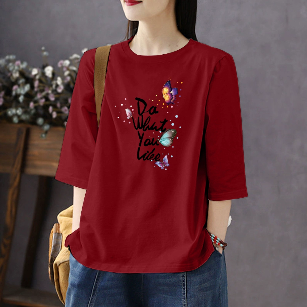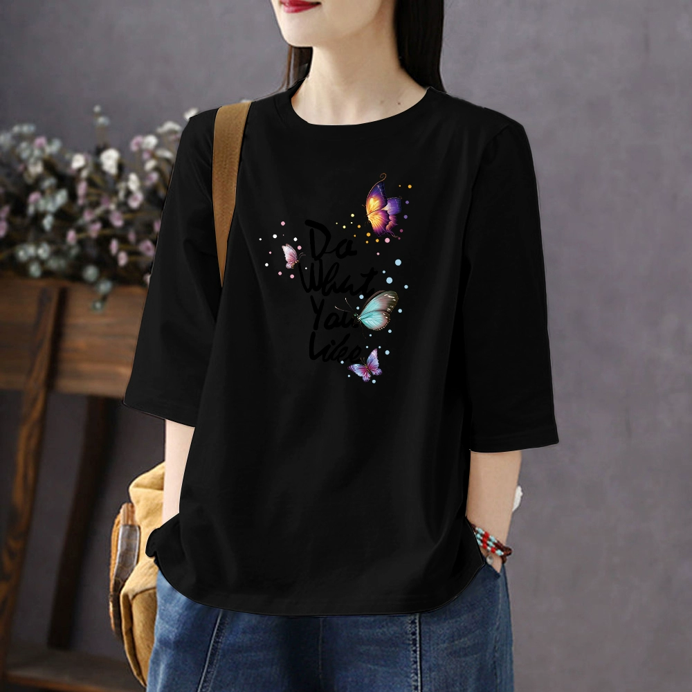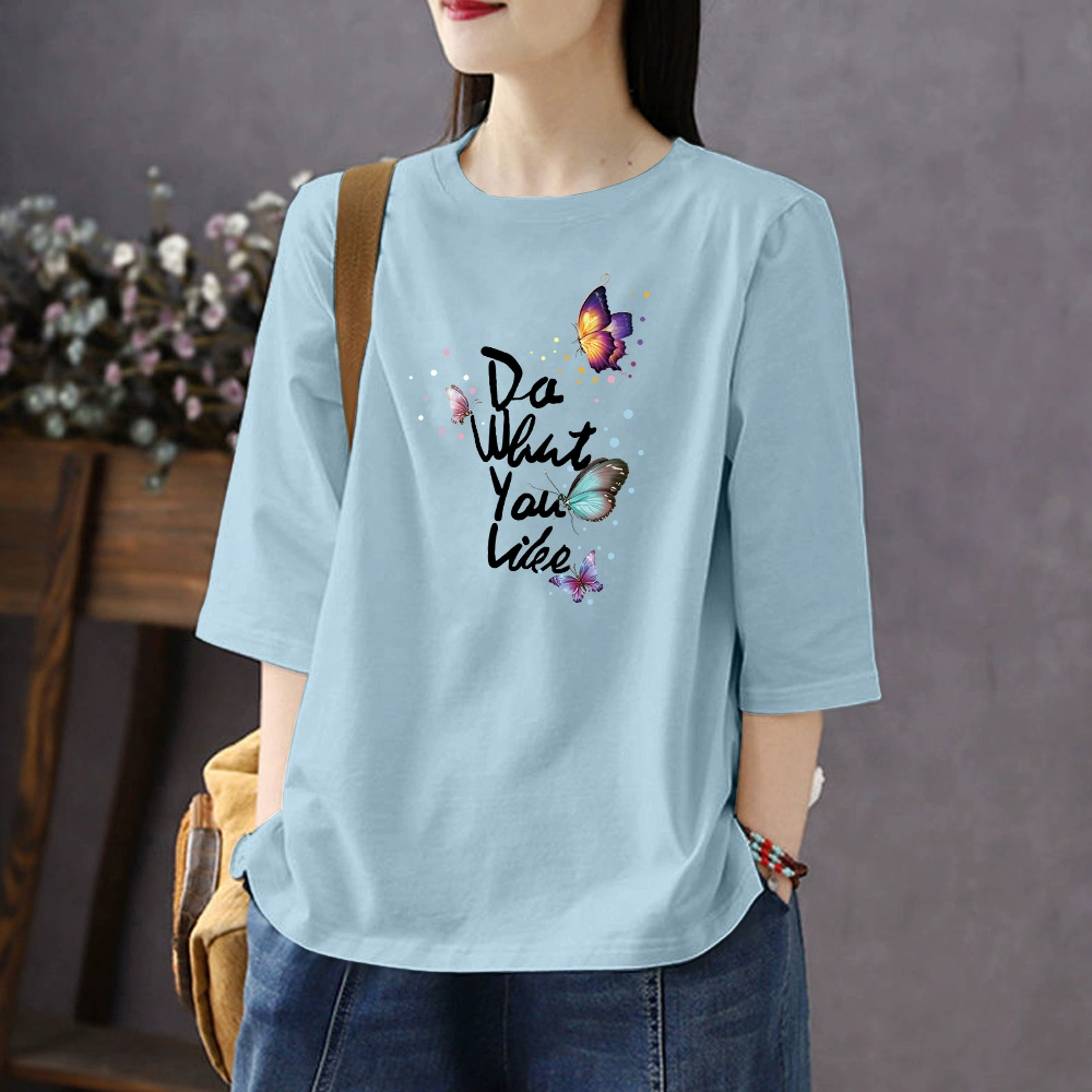 | nameOriginal | Pure cotton three-quarter sleeve loose large size fat mm right shoulder T-shirt |