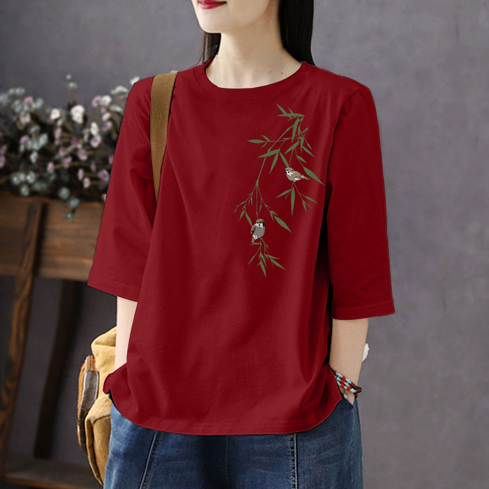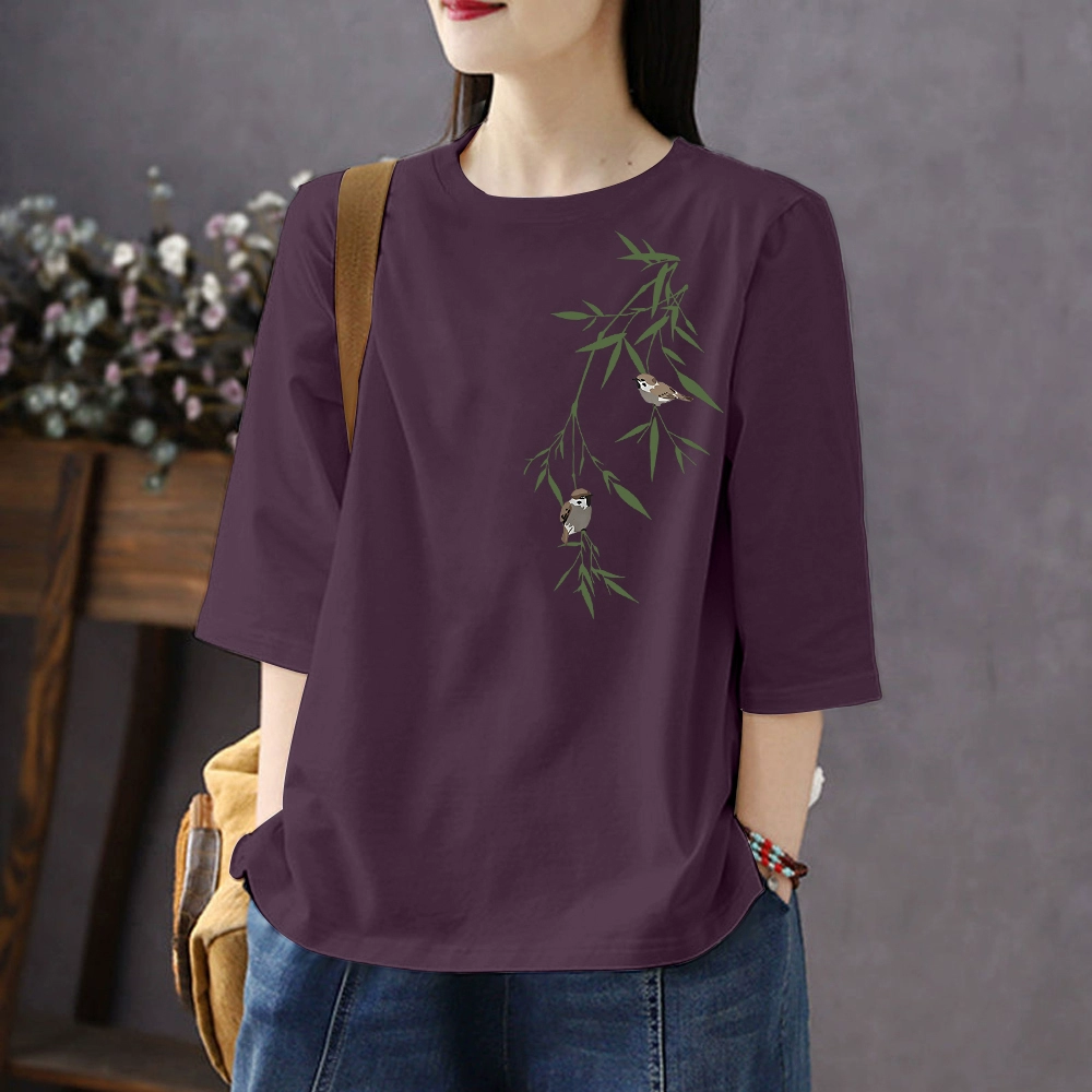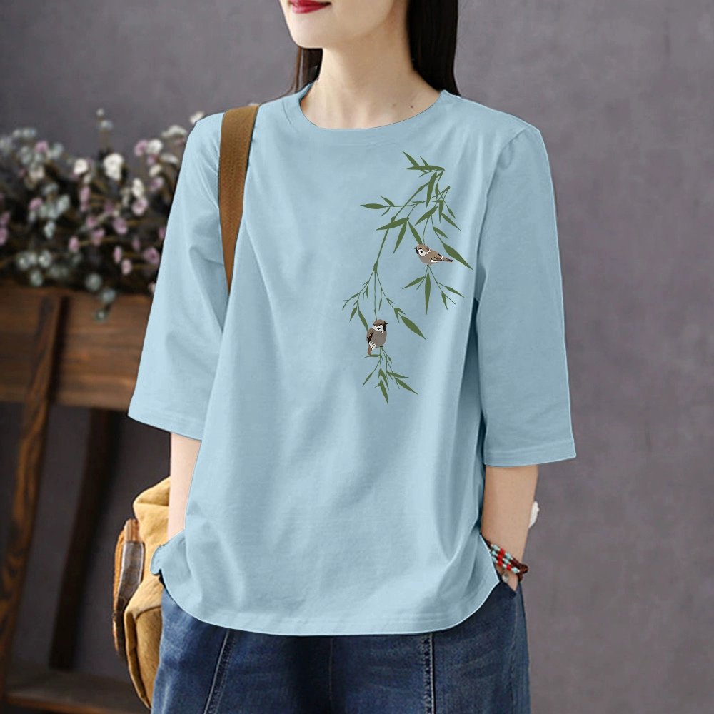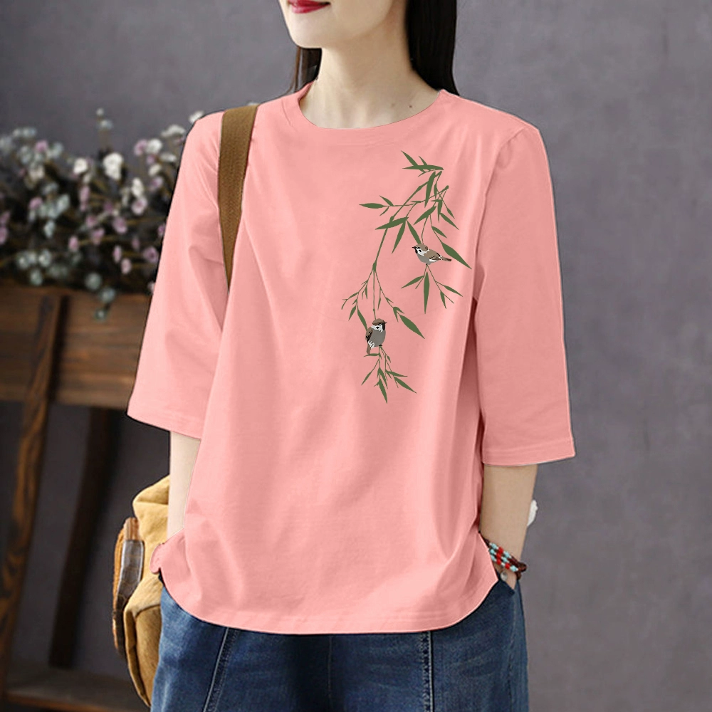 | nameOriginal | Pure cotton three-quarter sleeve loose right shoulder T-shirt |
