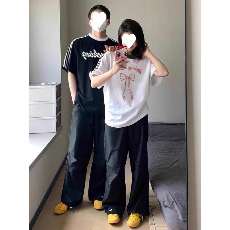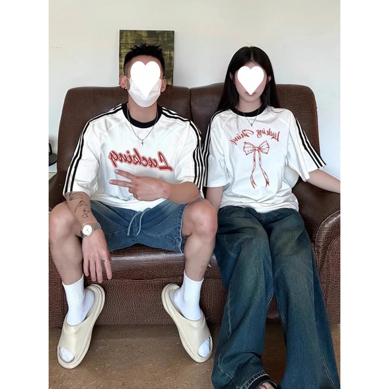 | nameOriginal | [Pure Cotton] Tie up Lucky Special Couple Dress Short Sleeve 2024 New Summer disoo Niche Three Bars T |