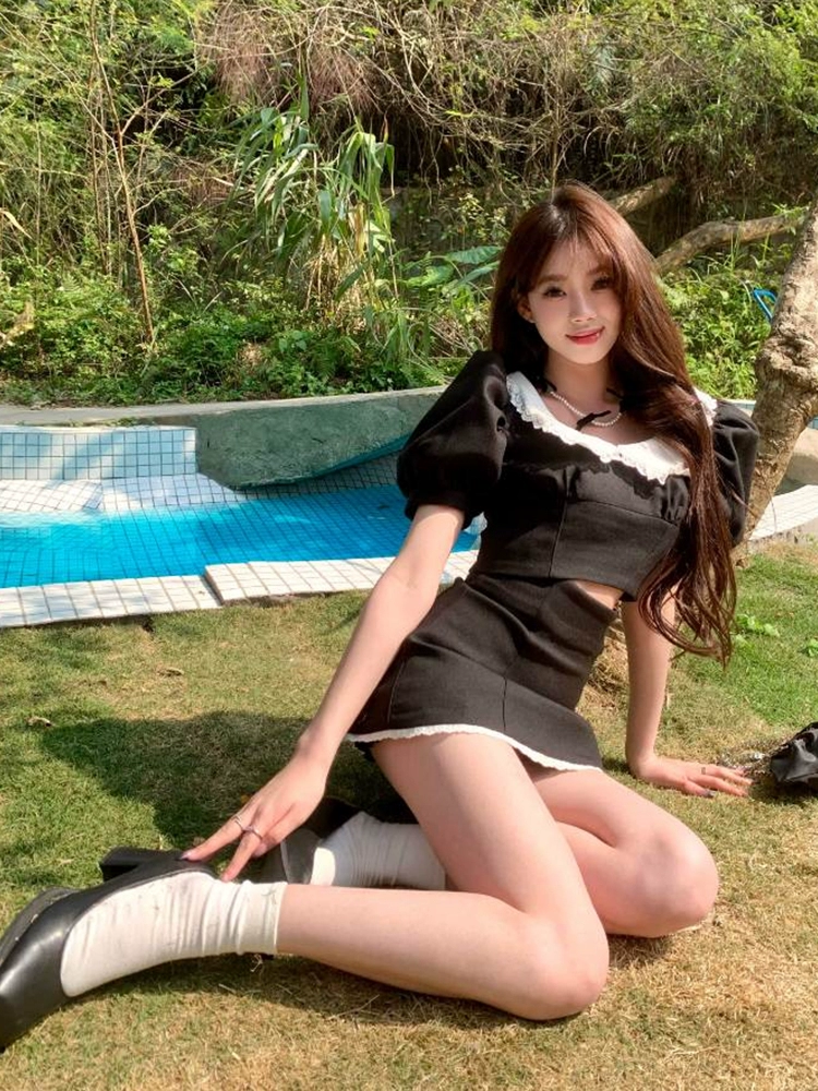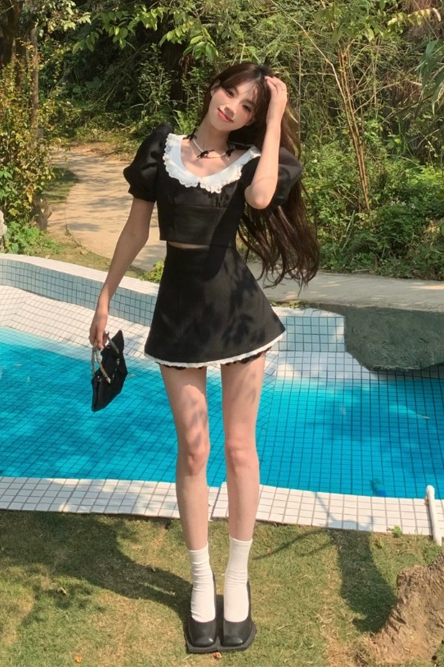 | nameOriginal | Pure Desire Baby Neck Puff Sleeve A-Line Skirt Top |