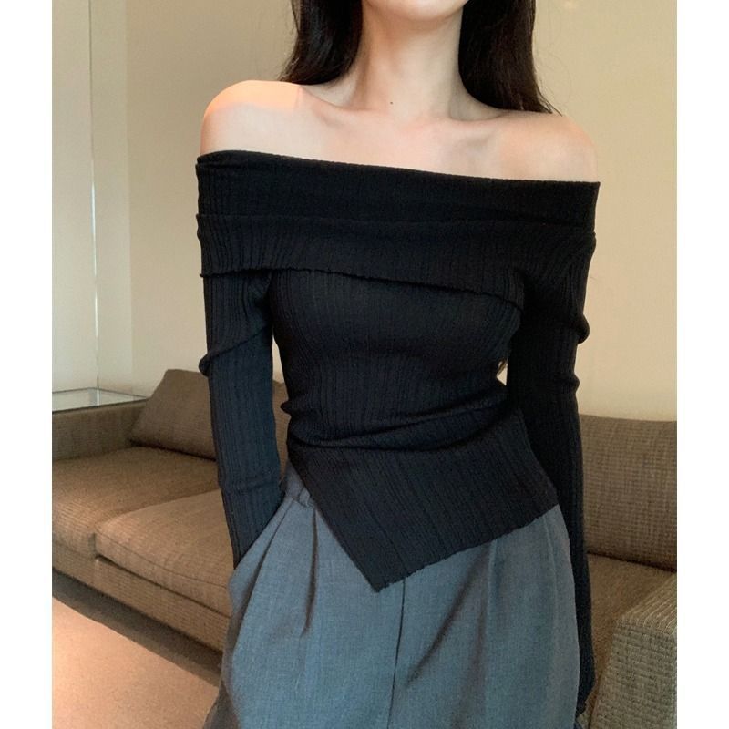 | nameOriginal | Pure Desire Black off-shoulder Sweater Women's Spring and Autumn Sexy Inner Lazy Base Shirt High-grade Knitted Top |
