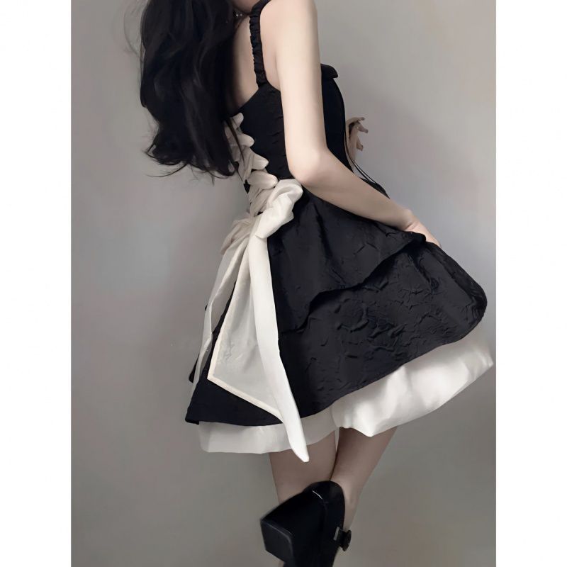 | nameOriginal | Pure Desire Bow Sling dress Women's Tight Waist Pop Skirt Small Cake Skirt French Black Skirt Ceremony Skirt |