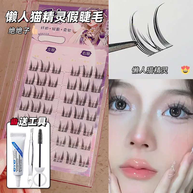 Pure Desire Cat Ears False Eyelashes Cat Elf Eyelashes Natural Simulation Fairy Novice No Makeup Female Single Cluster Beginner