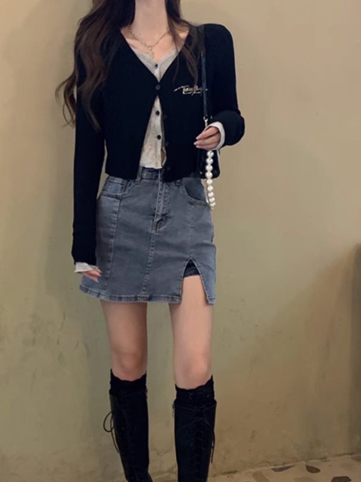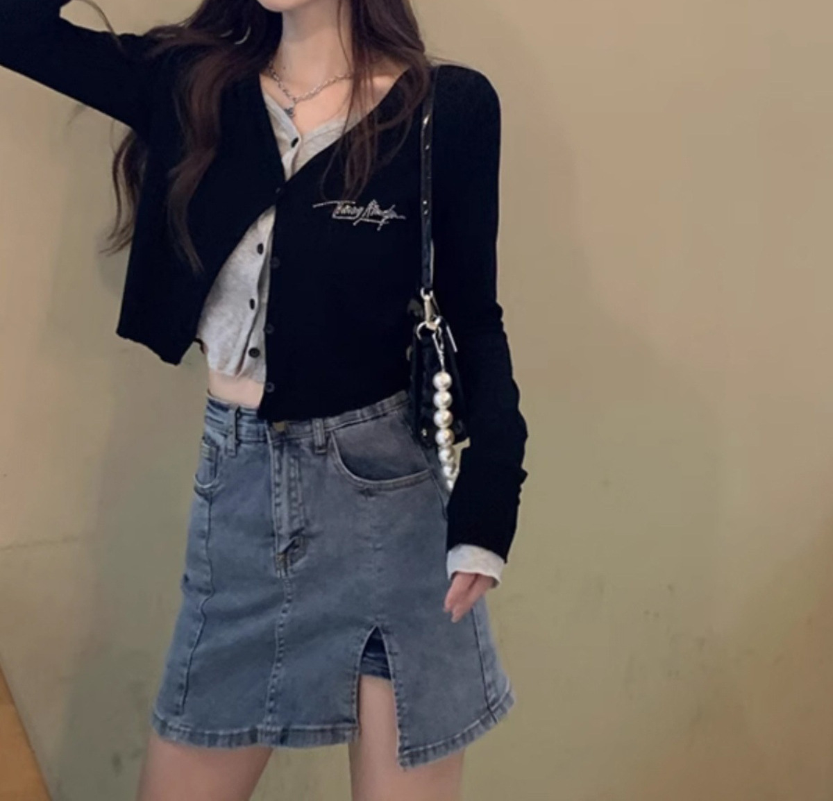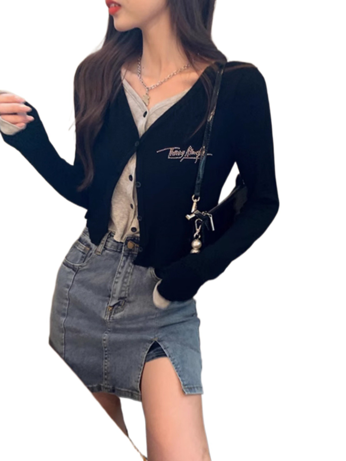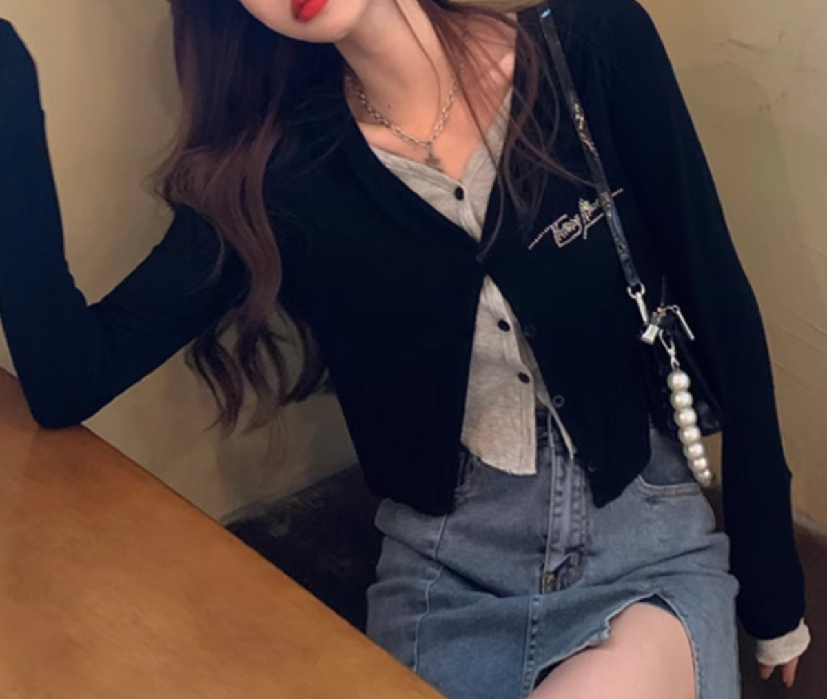 | nameOriginal | Pure desire fake two-piece long-sleeved T-shirt women's spring and autumn bottoming shirt design short inner wear chic sweet chic top |