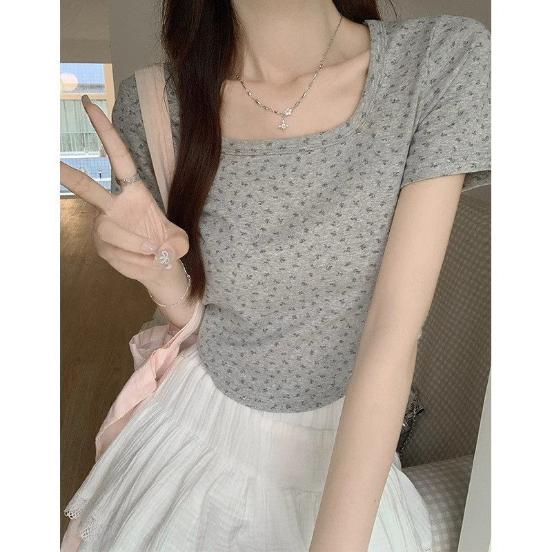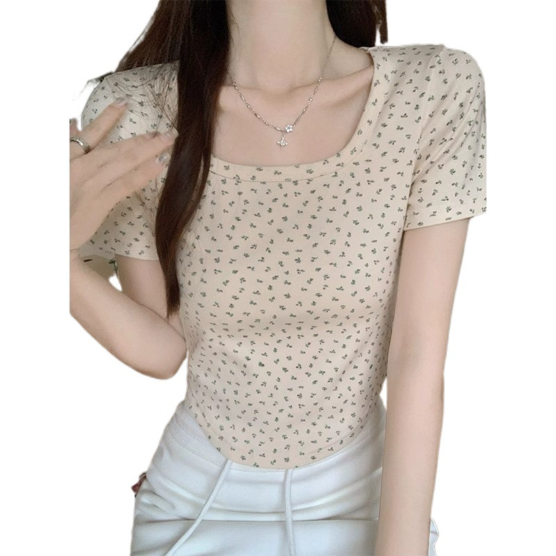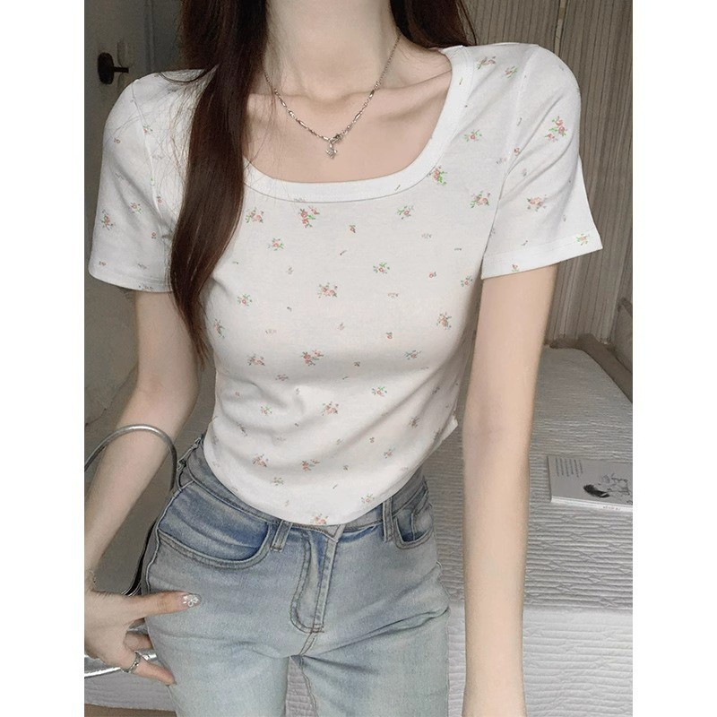 | nameOriginal | Pure Desire Floral Short-sleeved Summer Shirt Large Collar Hems Curved Slim-fit Slimming Daily All-match Short Top |