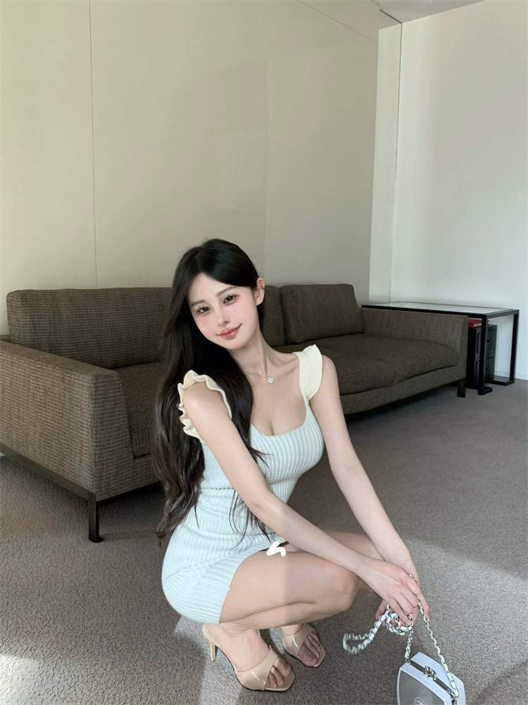Pure Desire Hot Girl Knitted Lace Suspender Dress Women’s Summer 2024 New Slim Fit Fashion Hip-packing Short Skirt
