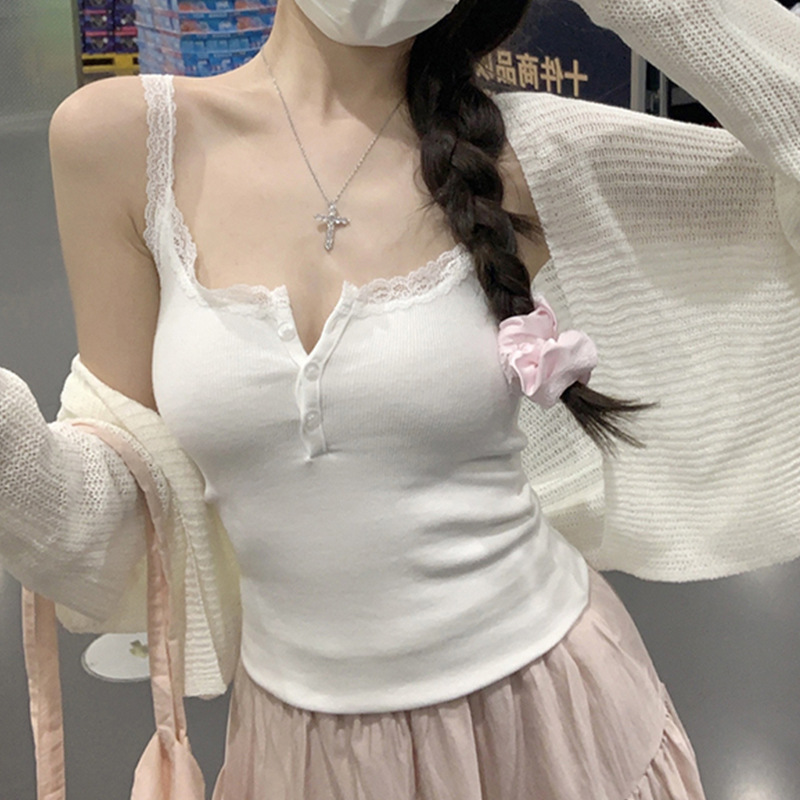 | nameOriginal | Pure Desire Lace Button Strap Women's Gentle Sweet Bm Lace Stitching Sleeveless Top Spring and Summer Ballet Style |