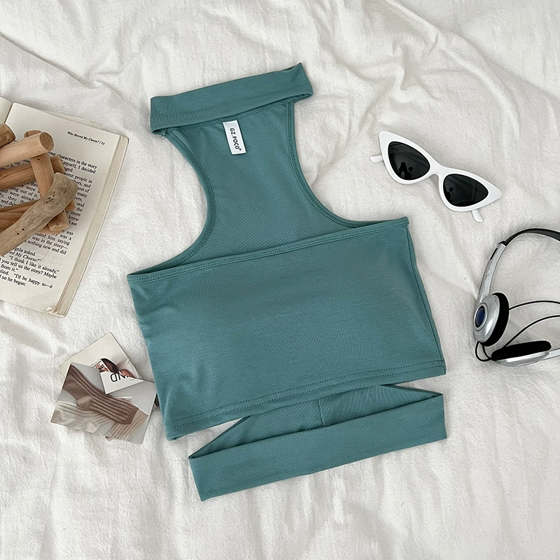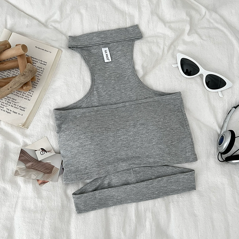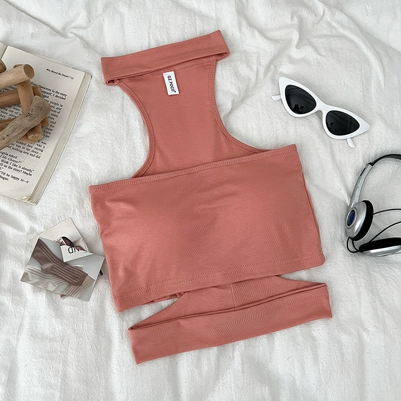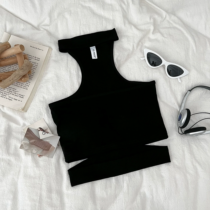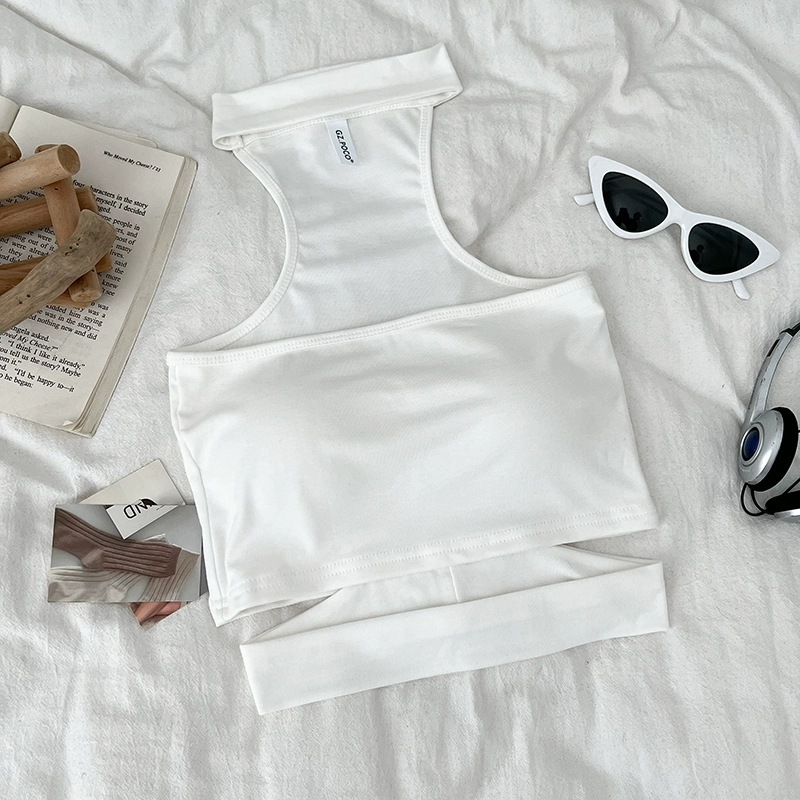 Pure Desire Sexy Versatile Halter Hollow Slim Fit Tube Top Sleeveless Vest Short Style Inner Top for Women