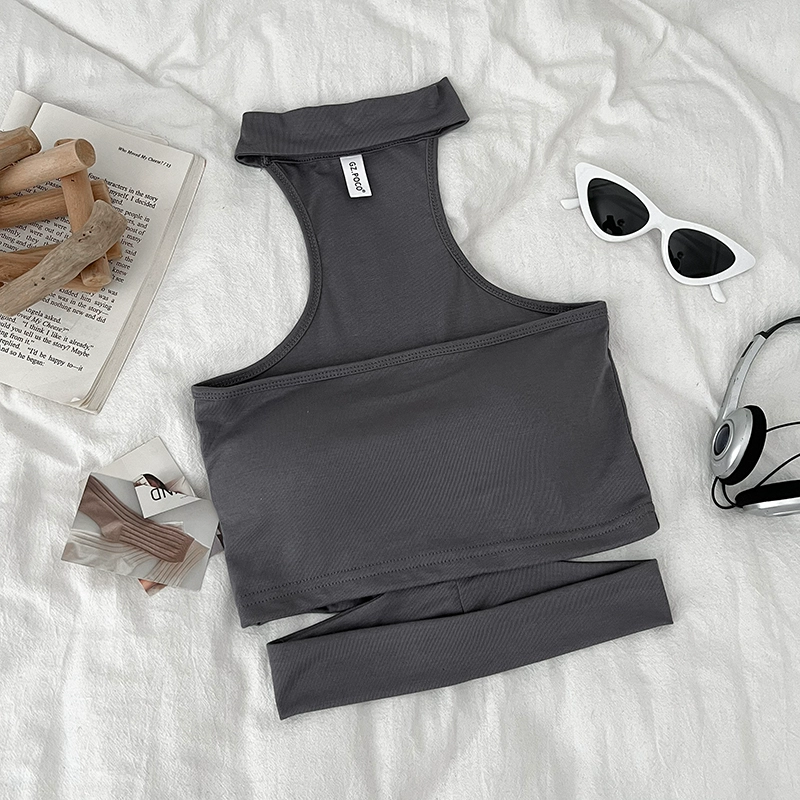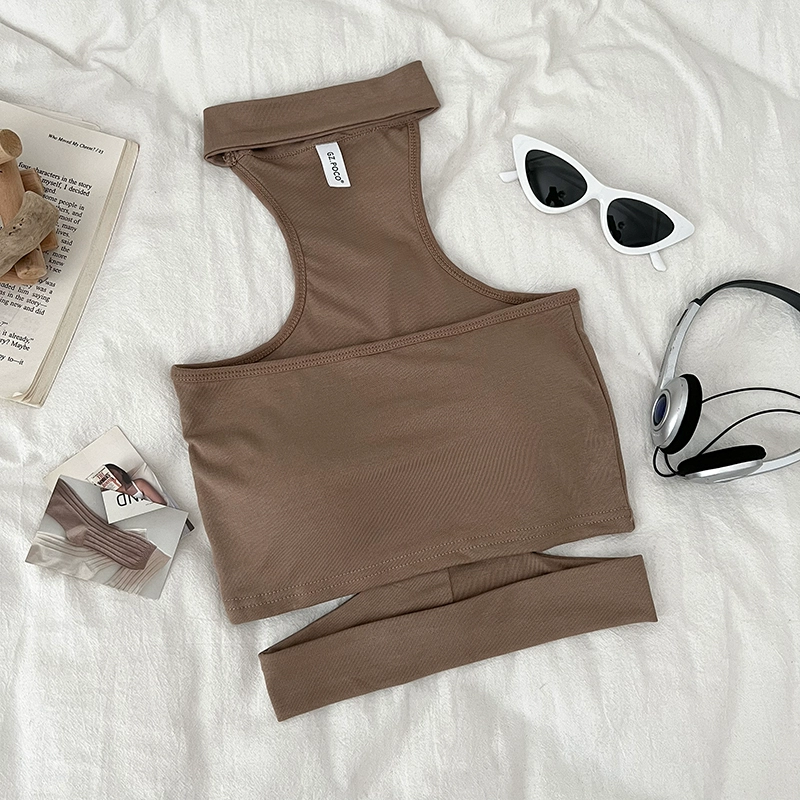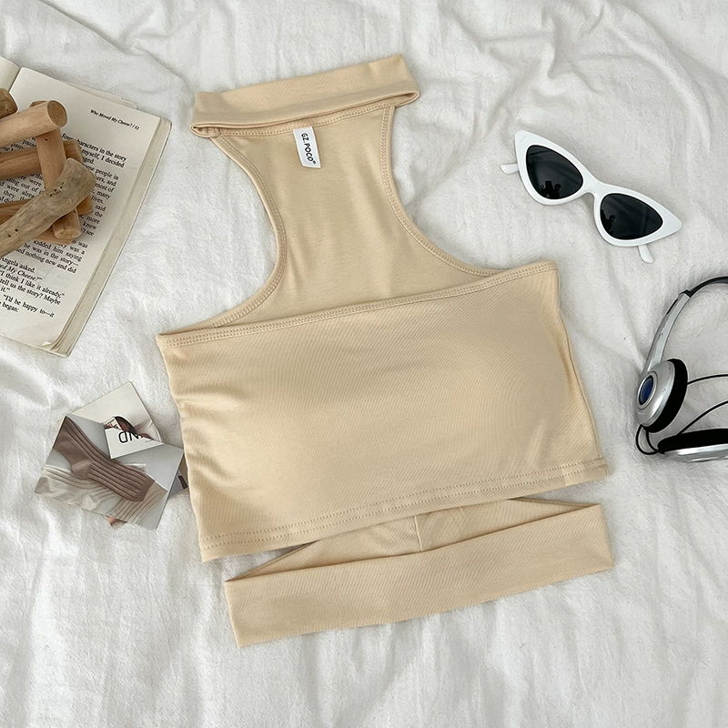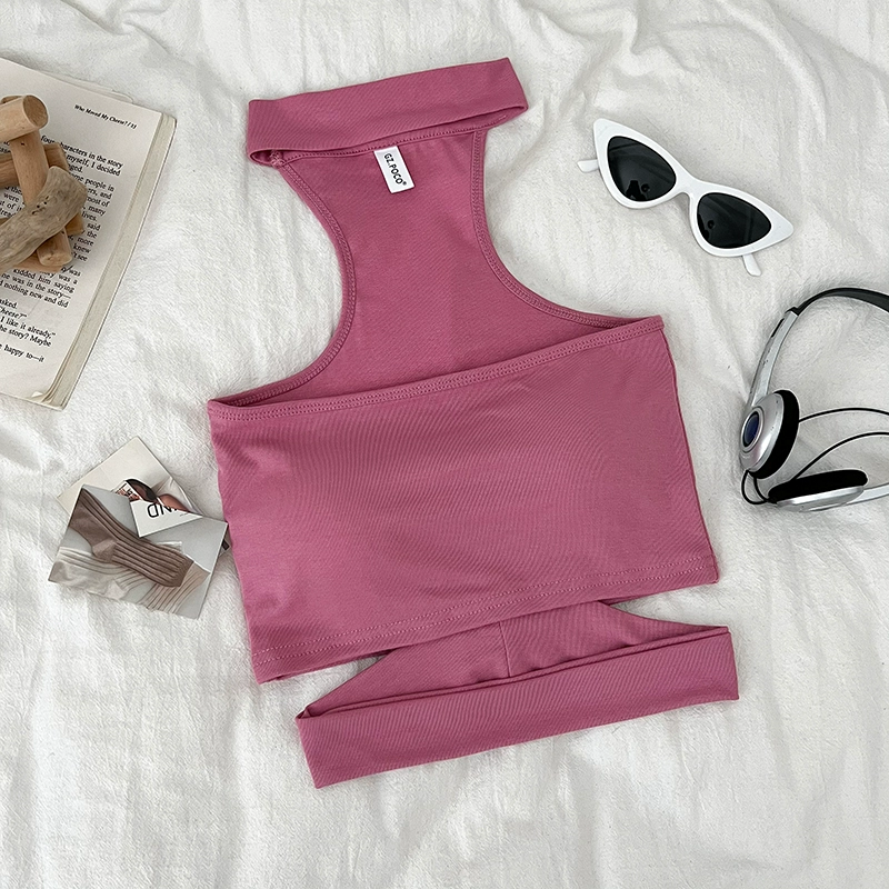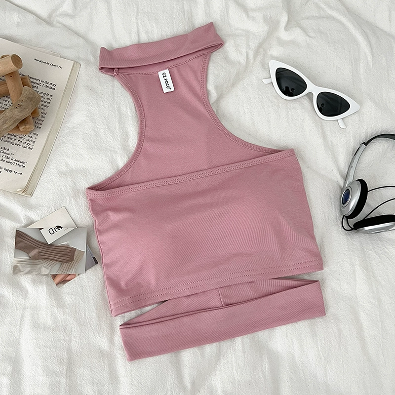 Pure Desire Sexy Versatile Halter Hollow Slim Fit Tube Top Sleeveless Vest Short Style Inner Top for Women