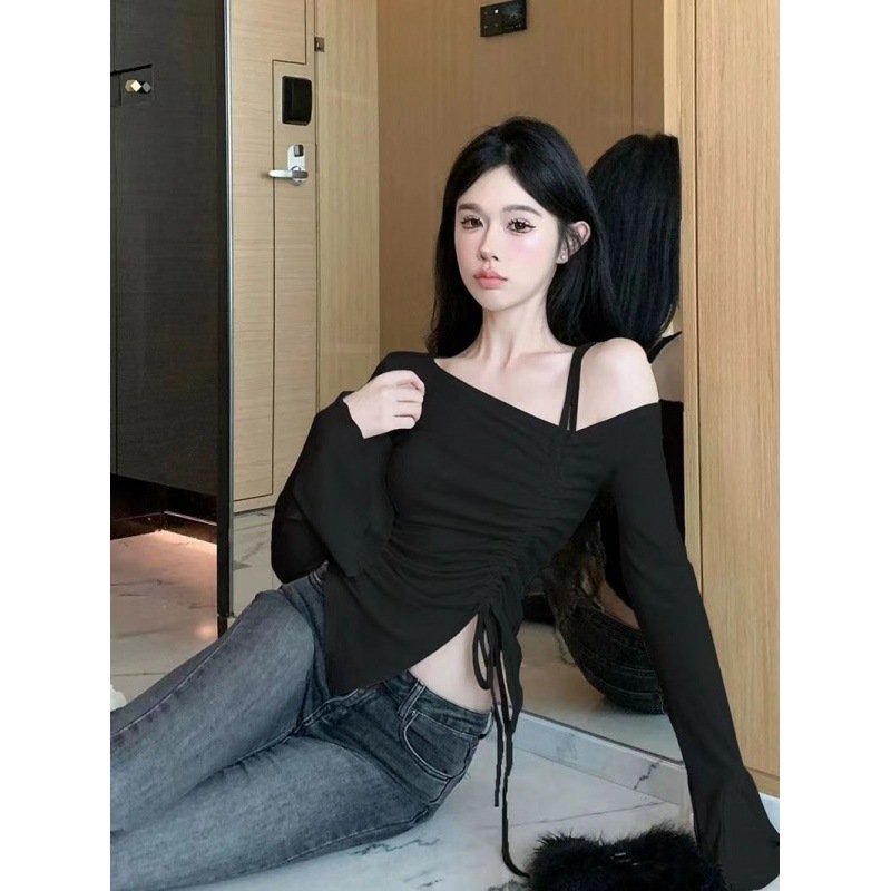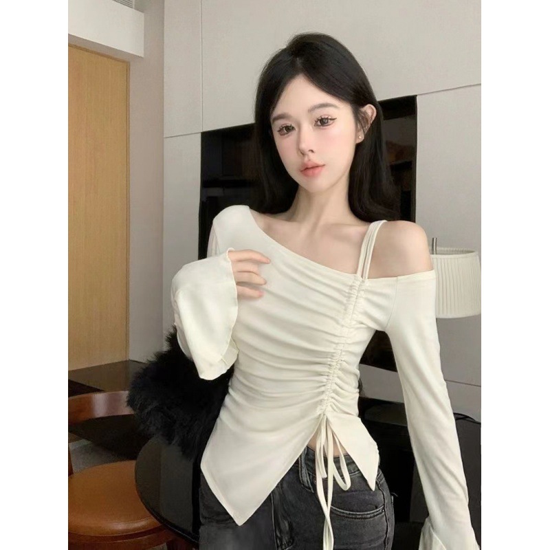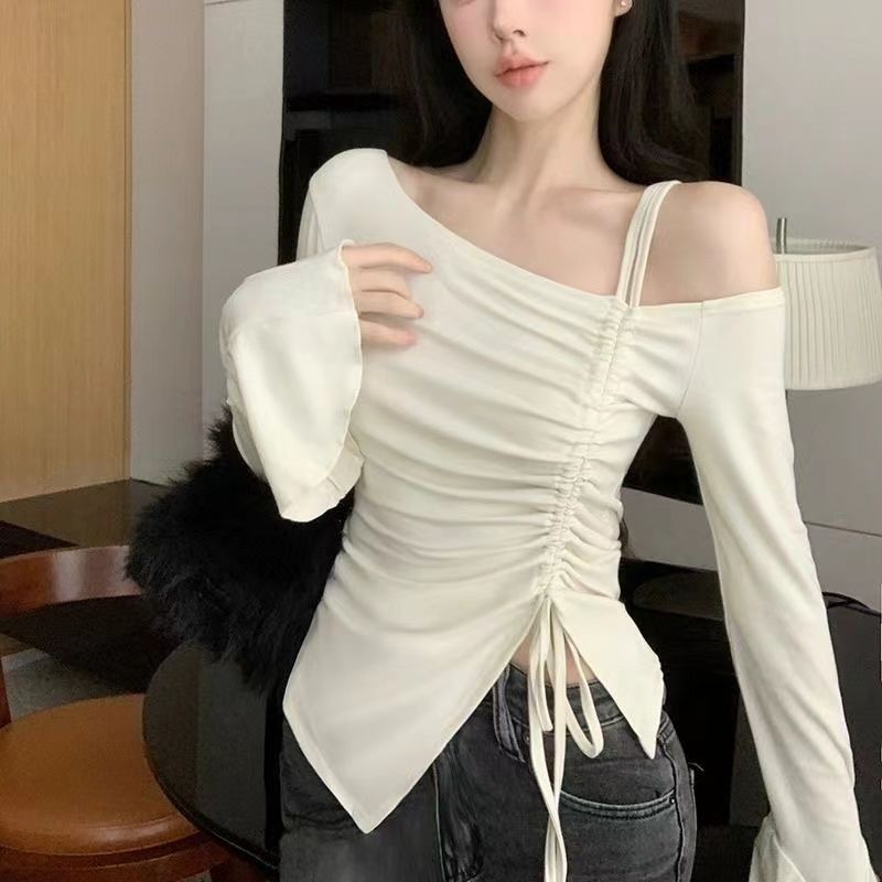| nameOriginal | Pure Desire Style Elegant Fashion Shoulder Drawstring Long-sleeved Shirt Women's Irregular Slim-fit Slimming Long-sleeved Base Top |
