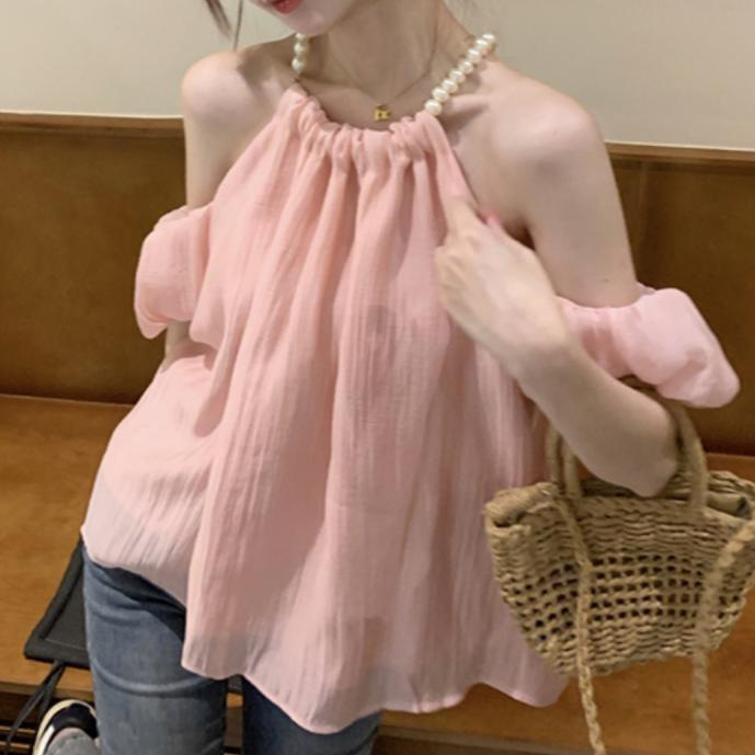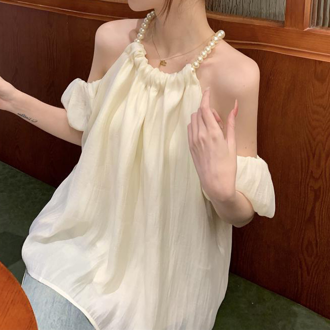 | nameOriginal | Pure Desire Style Hanging Neck Puff Sleeve Shirt Women's French Style Design Shoulder Shirt Loose Casual All-match Top Xia Xin |
