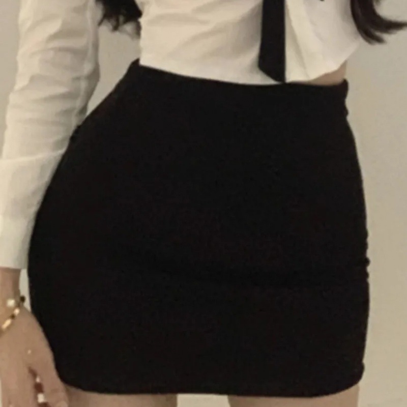 Pure Desire Style High-end Lace-up Solid Color Long-sleeved Shirt Women's Black High Waist Hip Skirt Design Sense Two-piece Suit