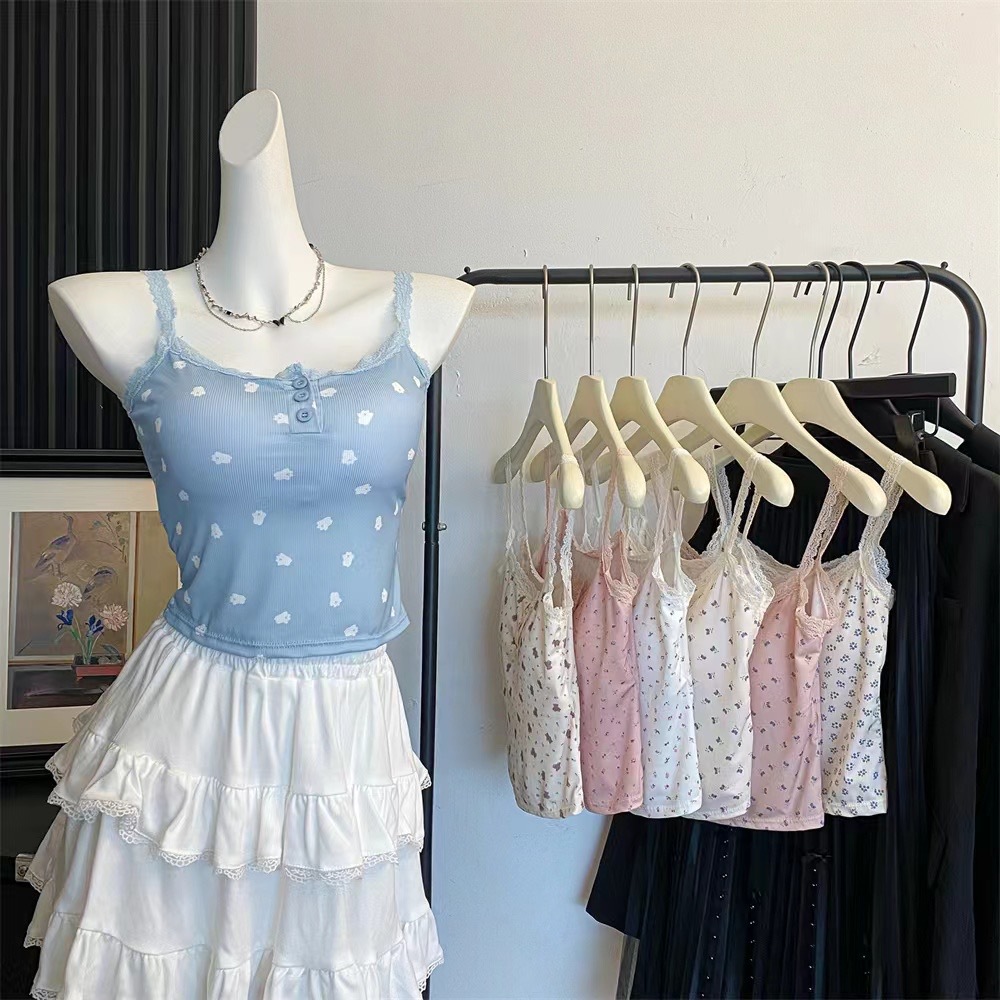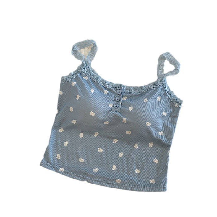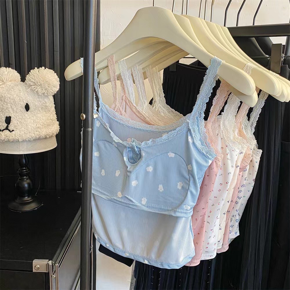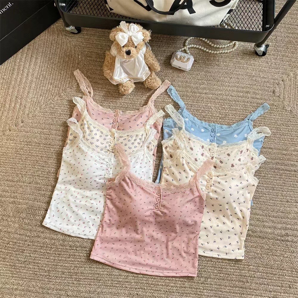| nameOriginal | Pure Desire Style Lace Floral Sweet Spice Girl Small Camisole Women's Summer Comes with Chest Pad Inner Slim Button Top |