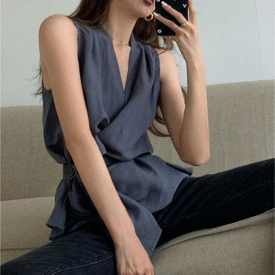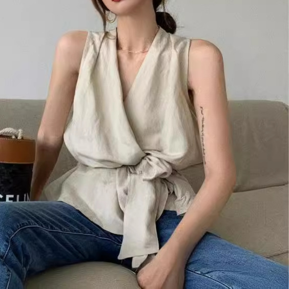 | nameOriginal | Pure Desire Style Retro Casual Lazy Elegant Shirt Top Women's Summer New Korean-style Waisted Lace-up Vest Top |