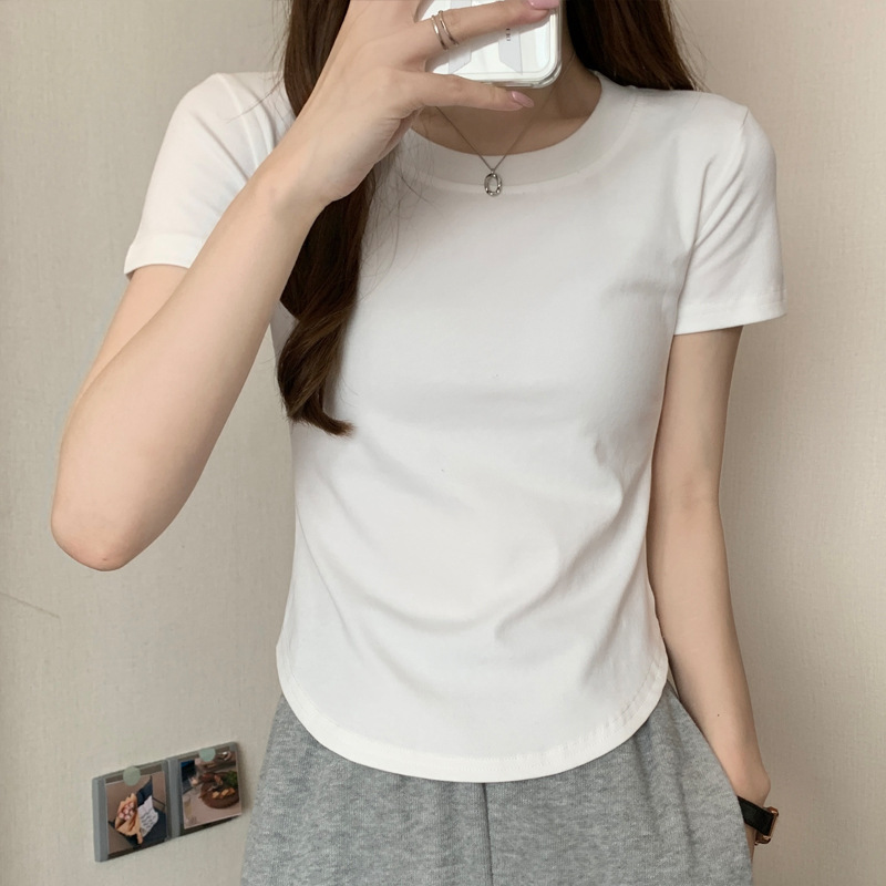 | nameOriginal | Pure Desire Style Round Neck Curved Hem Short-sleeved T-shirt Women's Summer New Korean Style Slim-fit Irregular Top Short Ins |