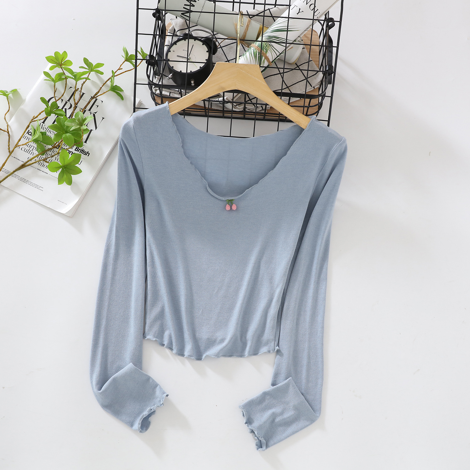 | nameOriginal | Pure Desire Style Soft Waxy Cherry Long-sleeved Base Shirt Summer New Thin Inner Slimming Top |