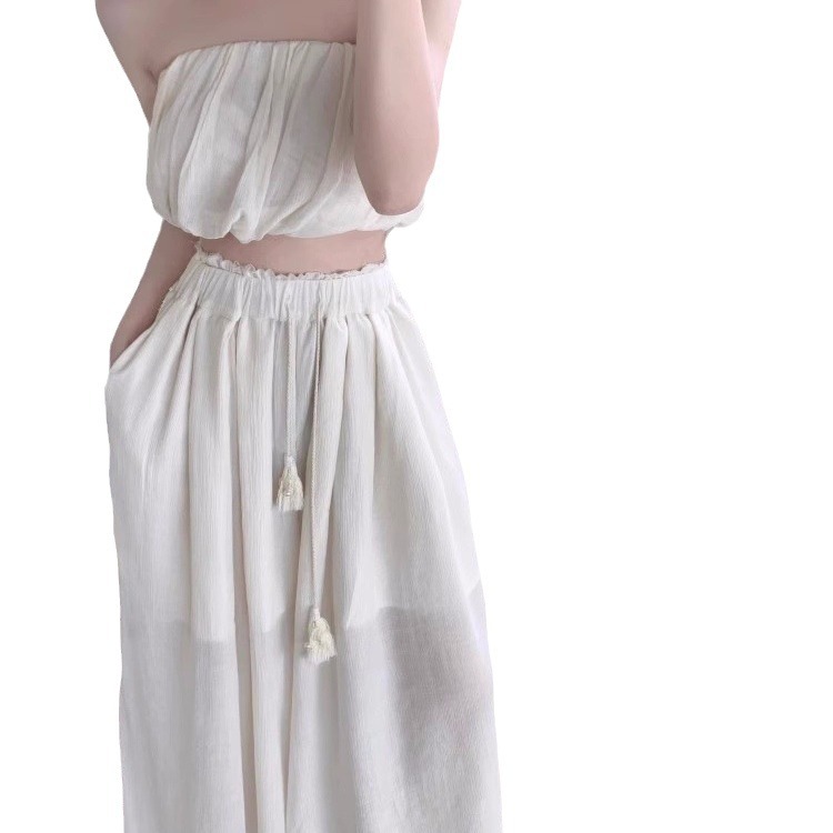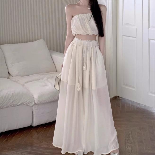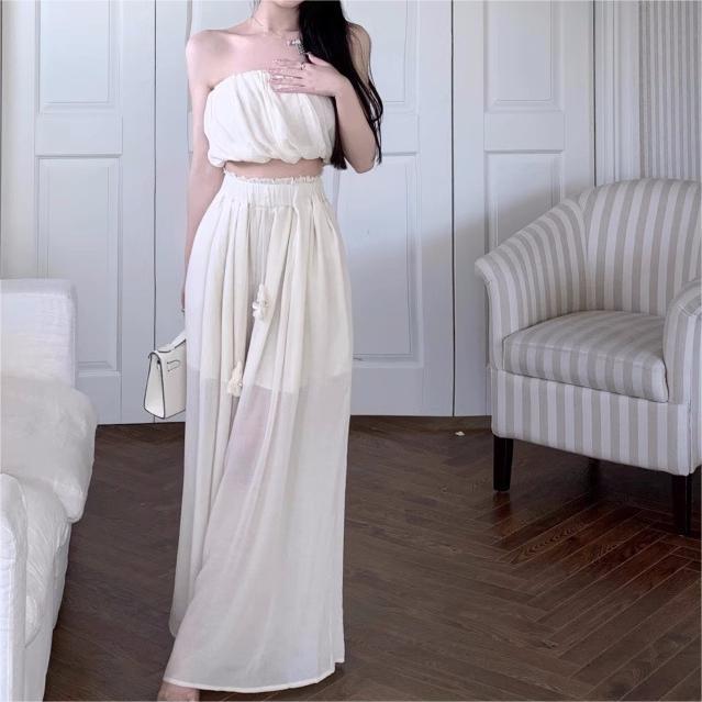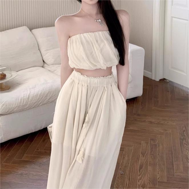 | nameOriginal | Pure Desire Style Spice Girl suit Summer Elegant Fashion Strapless Small Vest High Waist All-match Slim Look Wide Leg Pants Two-piece Set |