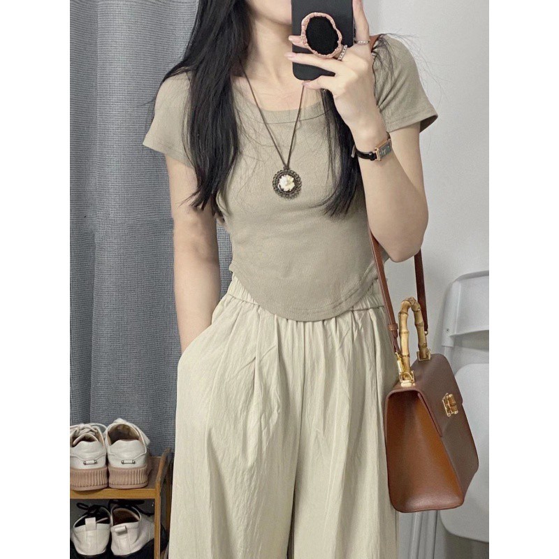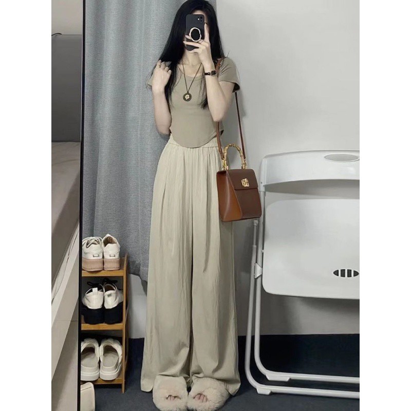 | nameOriginal | Pure Desire Style Spice Girl Summer New Tea Style Wear Design Sense Slim Short Sleeve Top Wide Leg Pants Two-piece Suit |