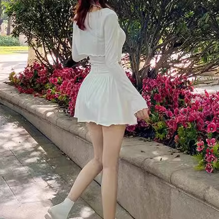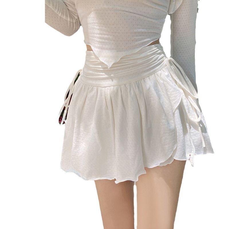 | nameOriginal | Pure Desire Style White Pompous Skirt Western Style Drawstring Pleated A- Line Skirt High Casual Waist Slimming Short Skirt Summer New |