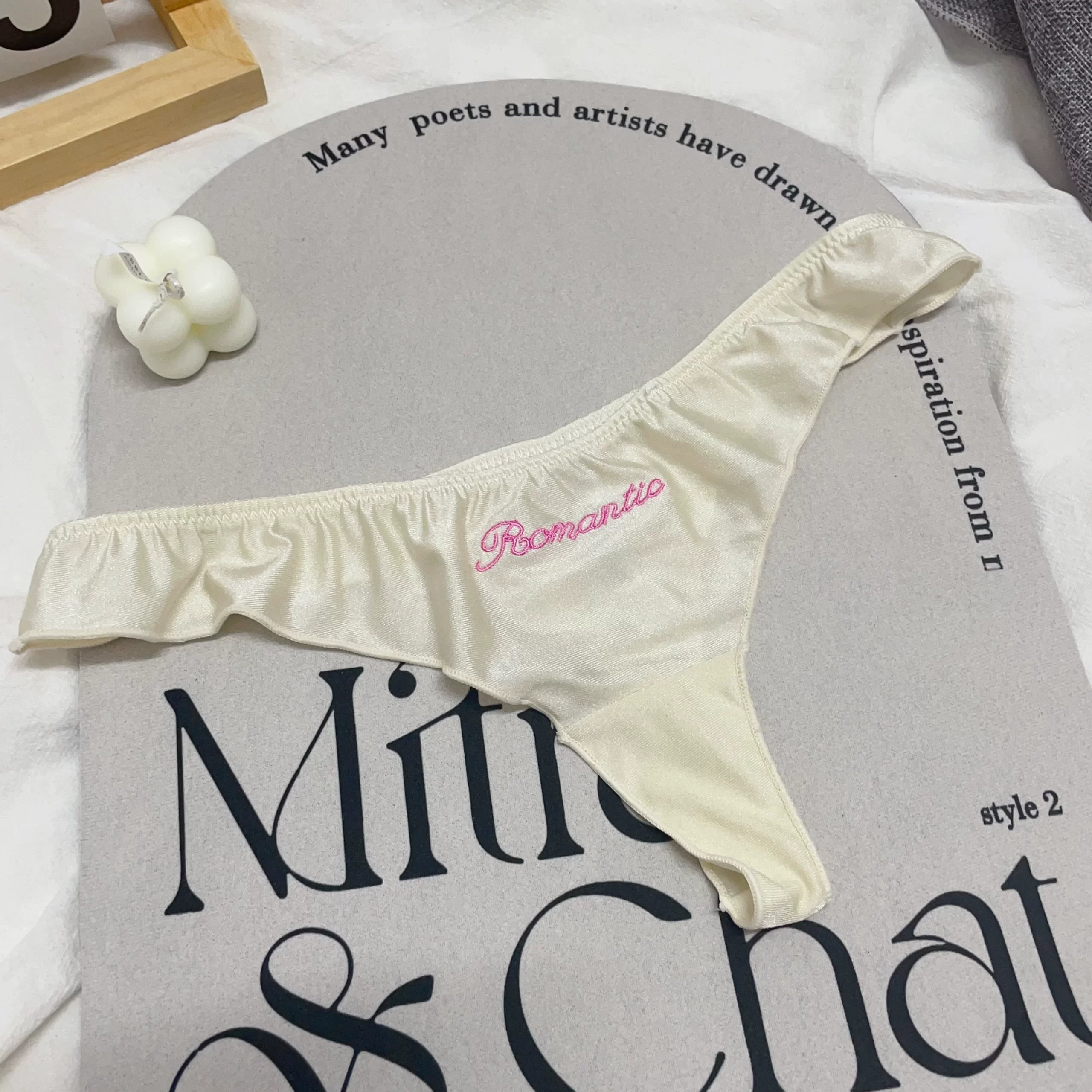 | nameOriginal | Pure Desire T-string Sexy Letters Ice Silk Satin Fashion Embroidery French European and American Hot Girl Women's Seamless T-Pants |