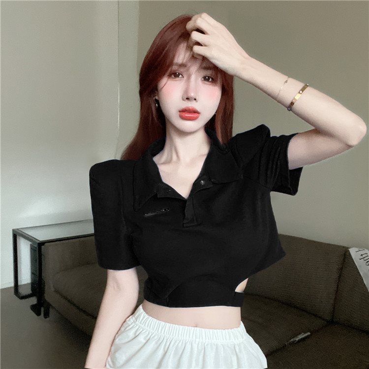 | nameOriginal | Pure Desire Unique Sweet Sexy Short Navel Polo Collar Top Design Sense Small-sized Shoulder Short-sleeved T-shirt for Women in Summer |