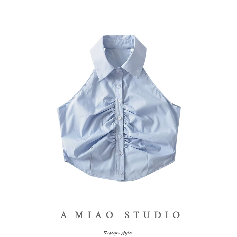 | nameOriginal | Pure erotic style pleated shirt collar short crop top |