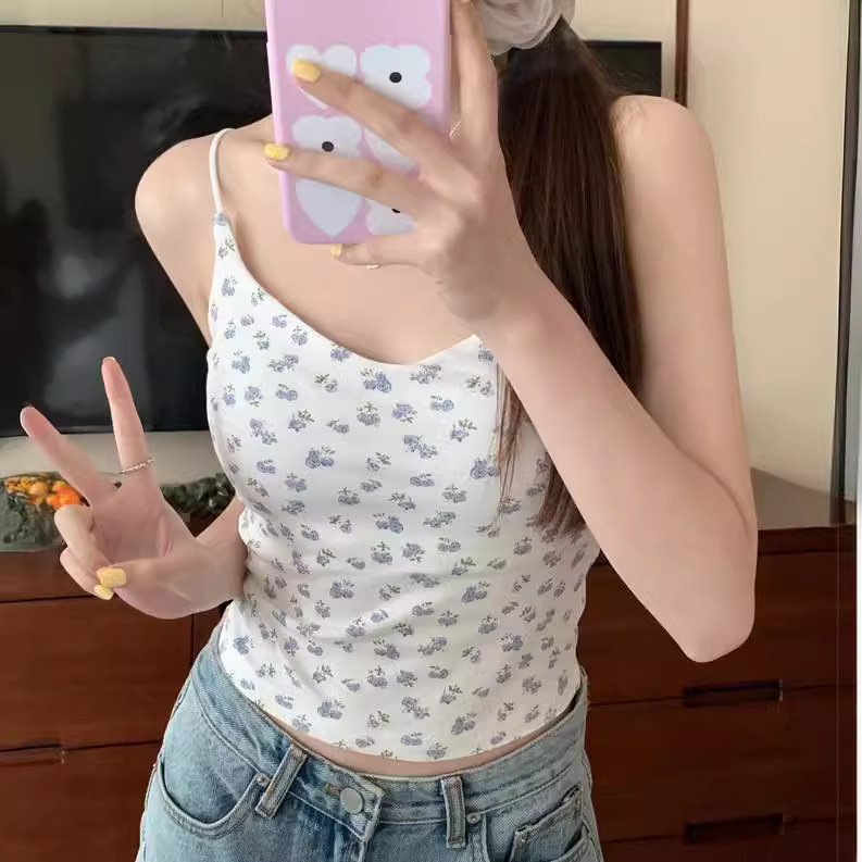 Pure Floral Small Camisole Women's 2024 Summer with Chest Pad Sexy Hot Girl Slim-fit Short Inner Top