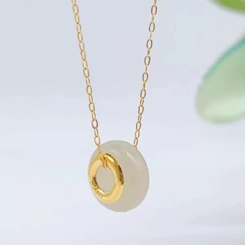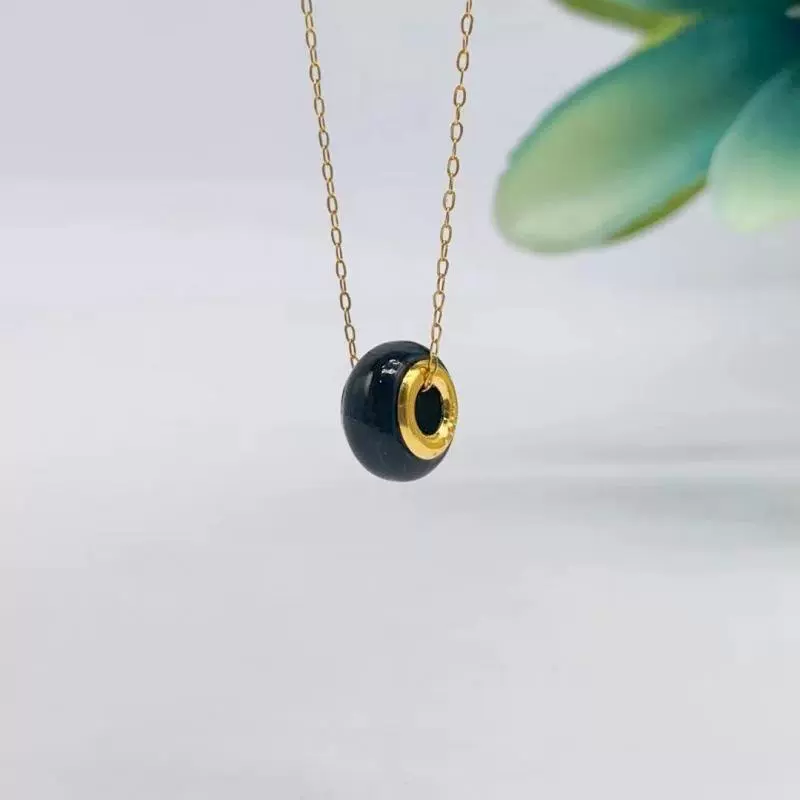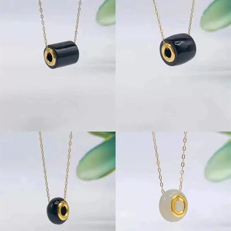 | nameOriginal | Pure gold inlaid with jade, Hetian jade pendant, white jade couple transfer beads for men and women, 24K gold Lulutong gift batch |