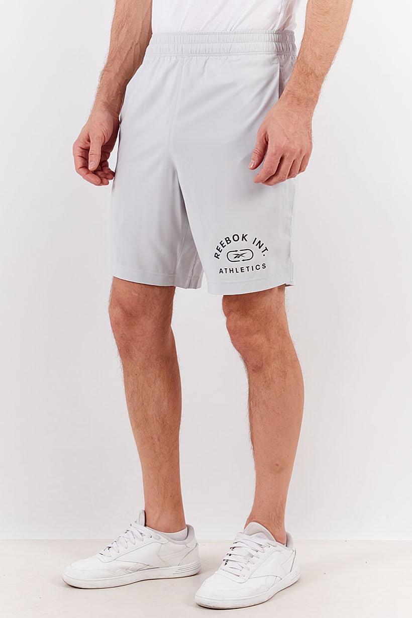 Pure Grey Woven Graphic Sport Shorts for Men’s Fit Training.