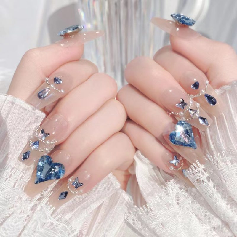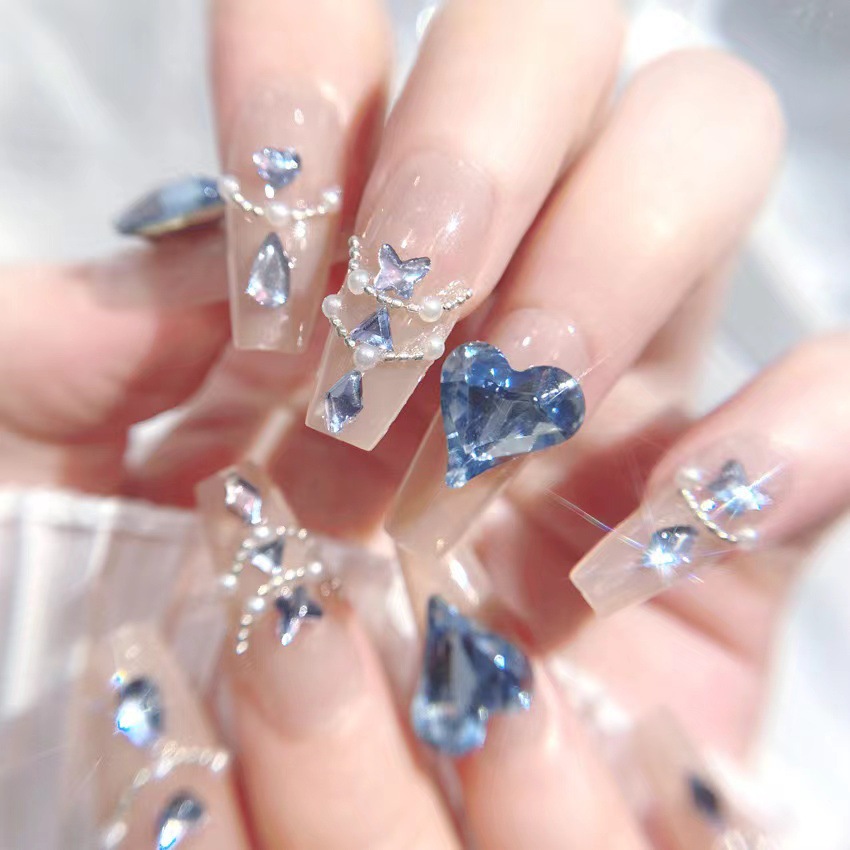 | nameOriginal | Pure Hand-Wearing Armor Mermaid Ji Summer Dream Princess Sky Star Crystal Blue Aesthetic Nail Wearing Armor Hand-Wearing Light |