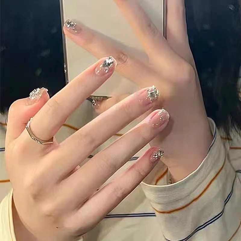Pure Hand-worn Armor “Flash Star River” Spring Explosions Show White Ice Flash Aurora Drill Wearable Nail Art