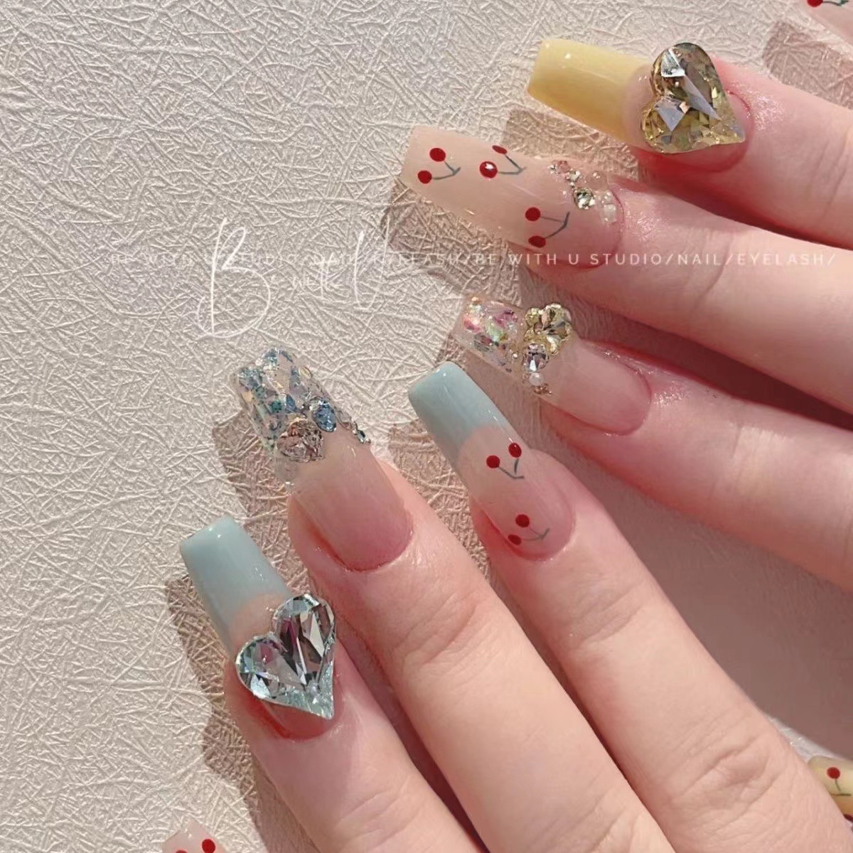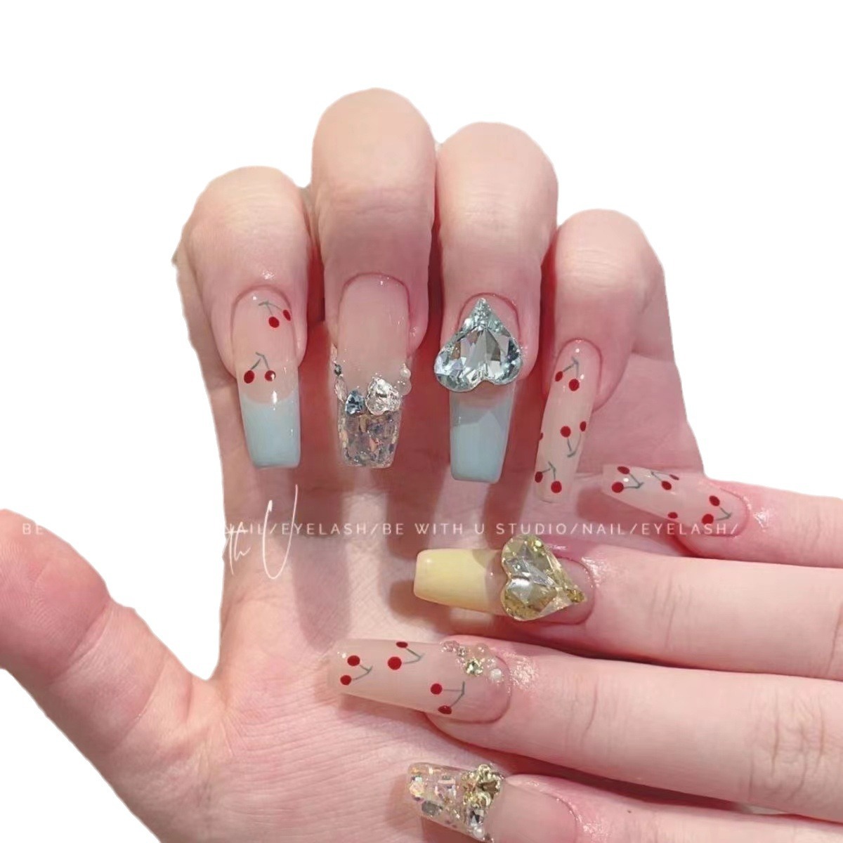| nameOriginal | Pure handmade nail art fresh red cherry summer nail essential hand-worn nail finished patch |