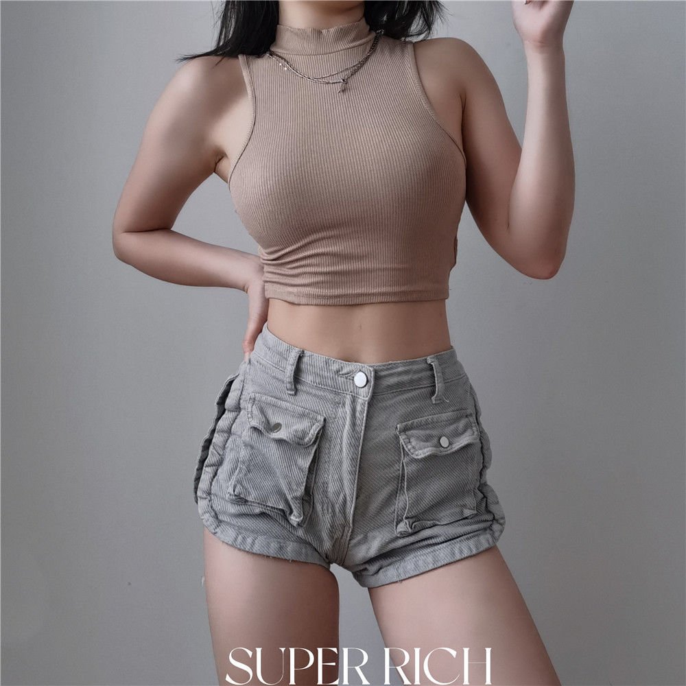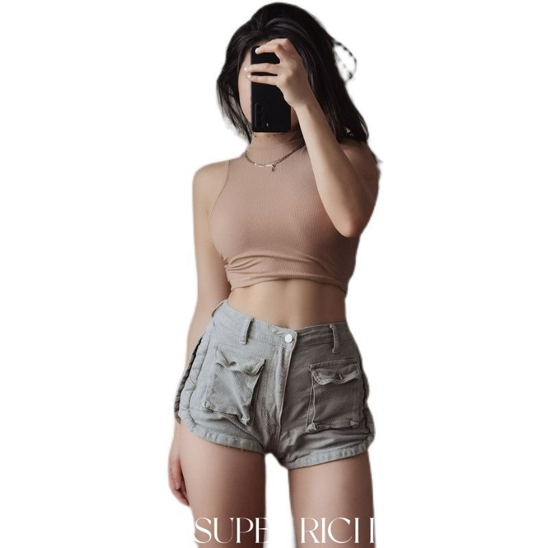 | nameOriginal | Pure hot girl American style half turtleneck sleeveless vest women's summer slim fit short navel slimming inner top women |