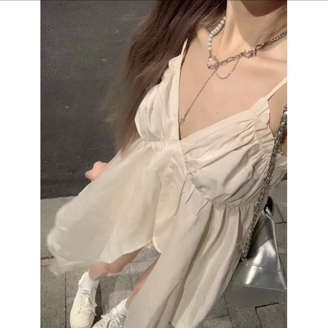 | nameOriginal | Pure Irregular Sling Summer New Hot Girl Design Niche Vest Elegant Pleated Dopamine Top Women |