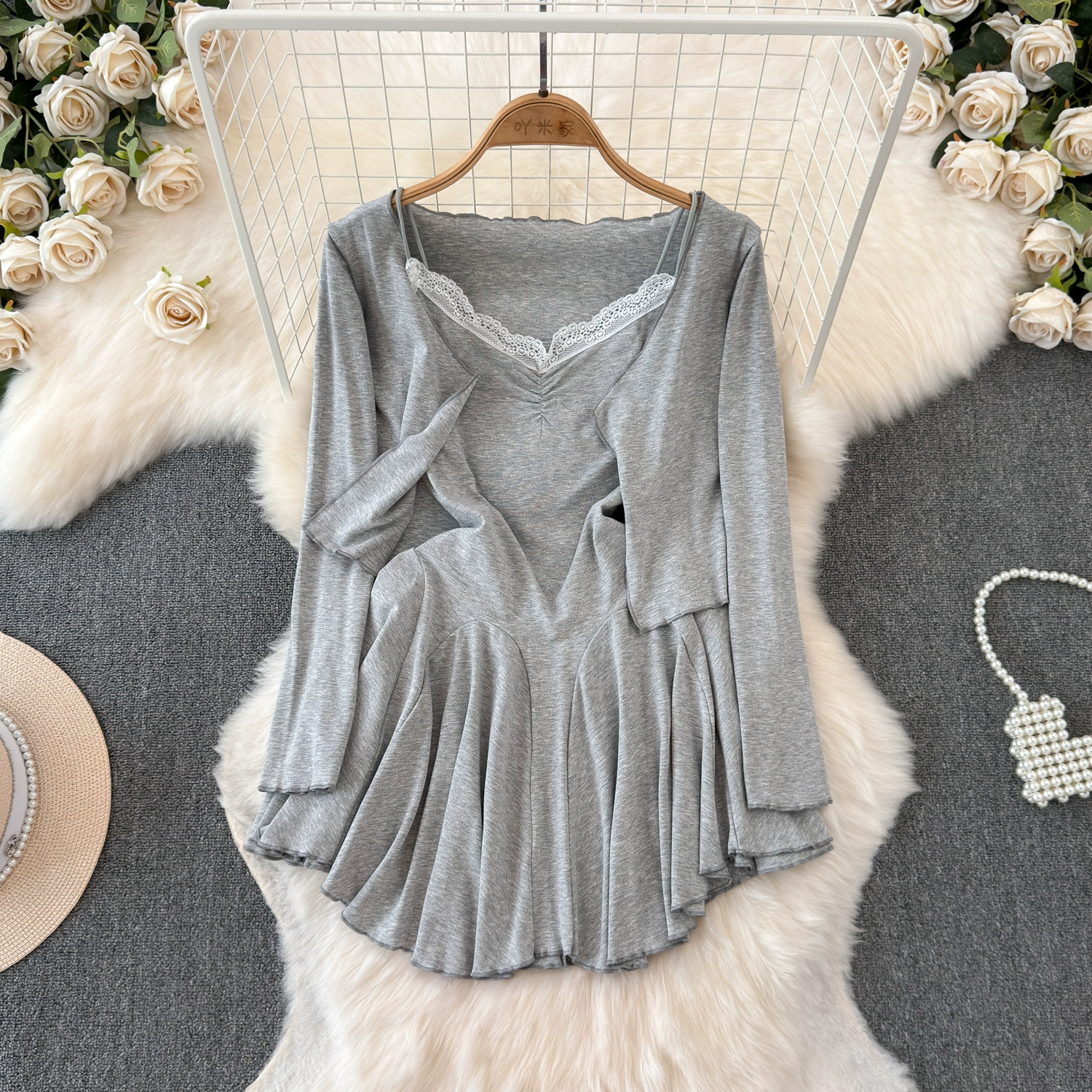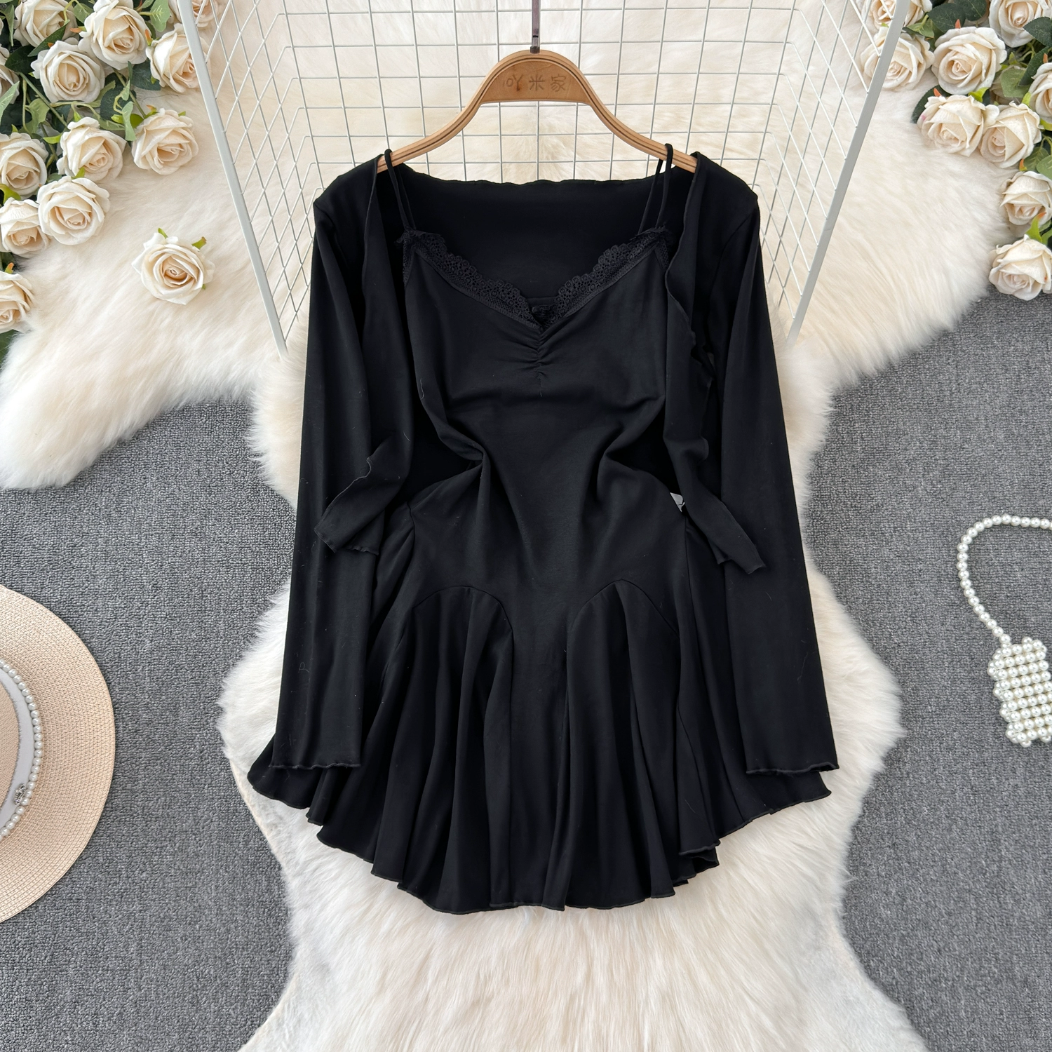 Pure lust style hot girl shows off her figure with lace suspender skirt, sun protection cardigan jacket, autumn casual slimming two-piece set for women