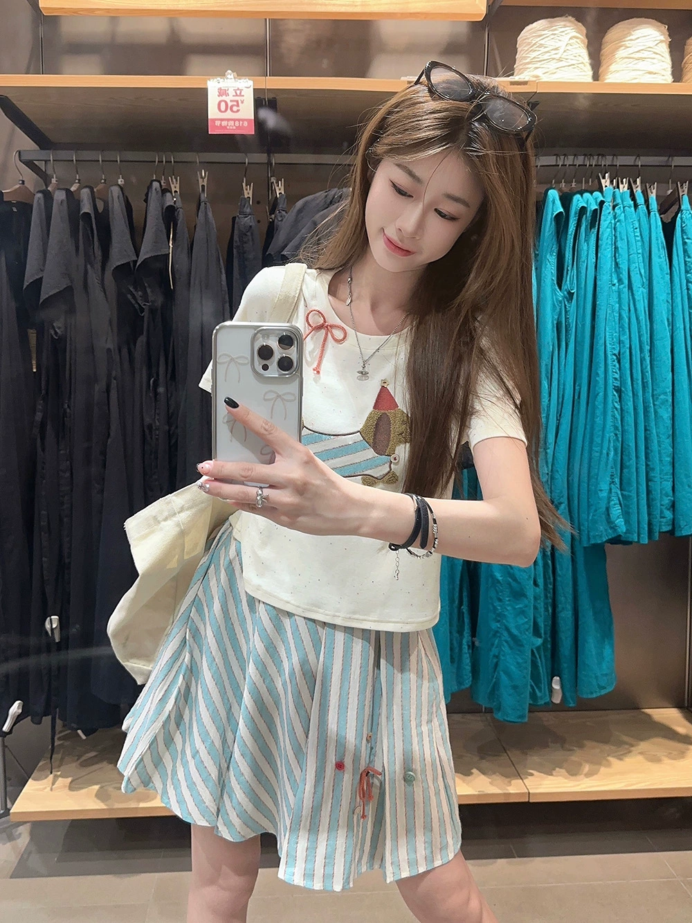 | nameOriginal | Pure lust style right shoulder short sleeve T-shirt A-line women's summer embroidery |