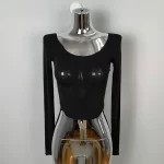 | nameOriginal | Pure lust style sexy see-through U-neck bust-showing top for women short style figure-showing long-sleeved T-shirt tight irregular bottoming shirt |