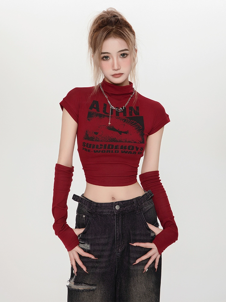 | nameOriginal | Pure lust style short-sleeved T-shirt with sleeves for women summer abg hottie sexy exposed navel slimming slim right shoulder short top |