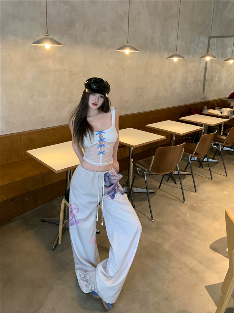 Pure lust style women’s summer printed casual two-piece lace set