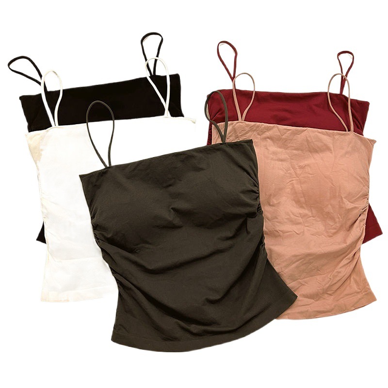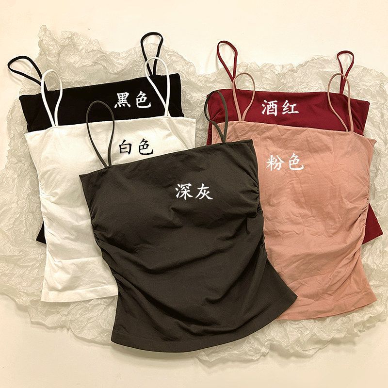 | nameOriginal | Pure Pleated White Camisole Women's Summer Inner Wear with Chest Pad Sweet Spice Girl Outer Wear Slimming Beautiful Back Sleeveless Top |