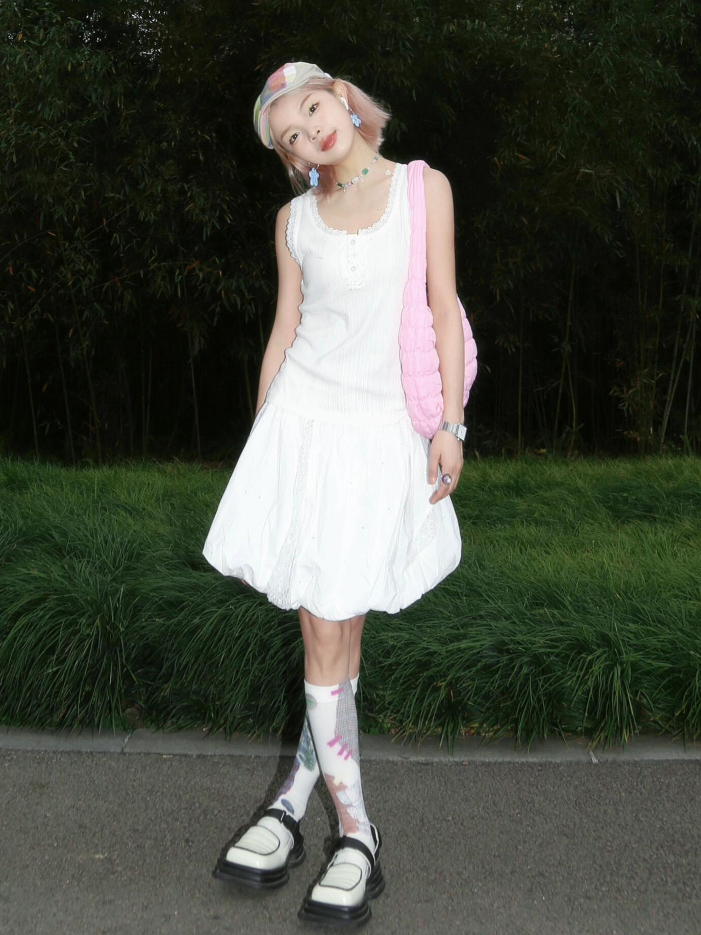 | nameOriginal | Pure Spice Girl Fashion suit Women's Summer Washed Color Lace Camisole Flower Bud Half-length Skirt Two-piece Set |
