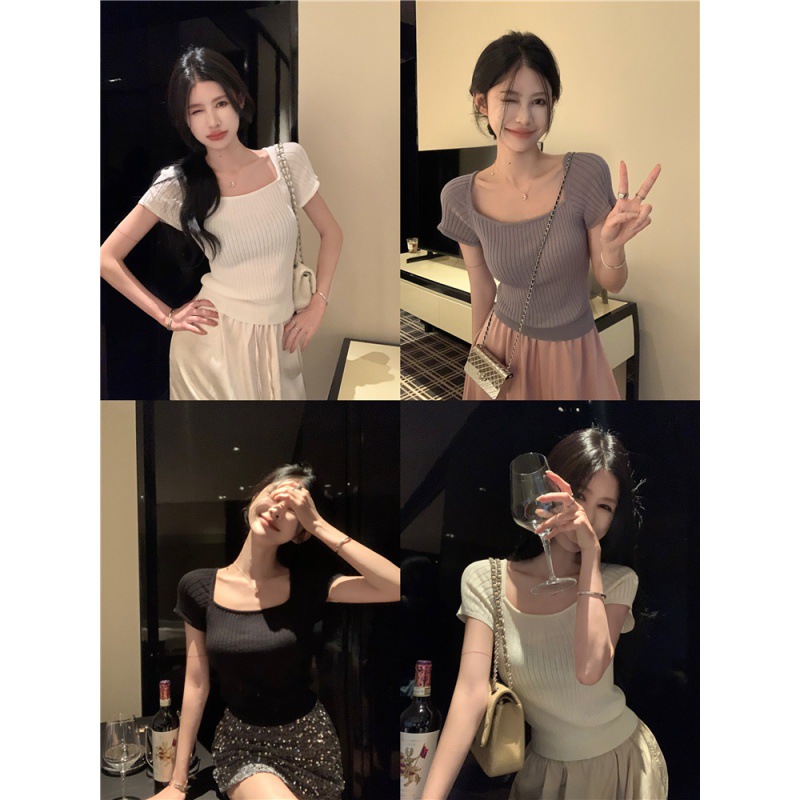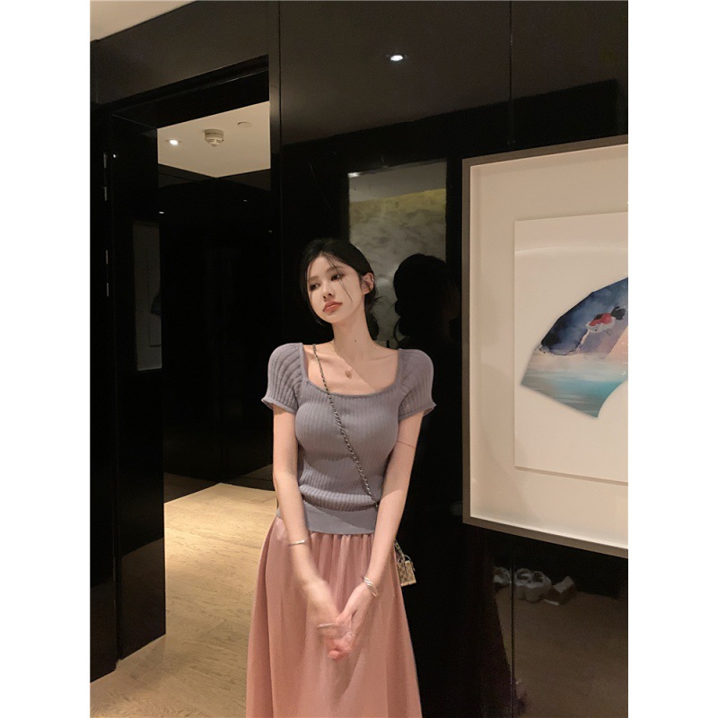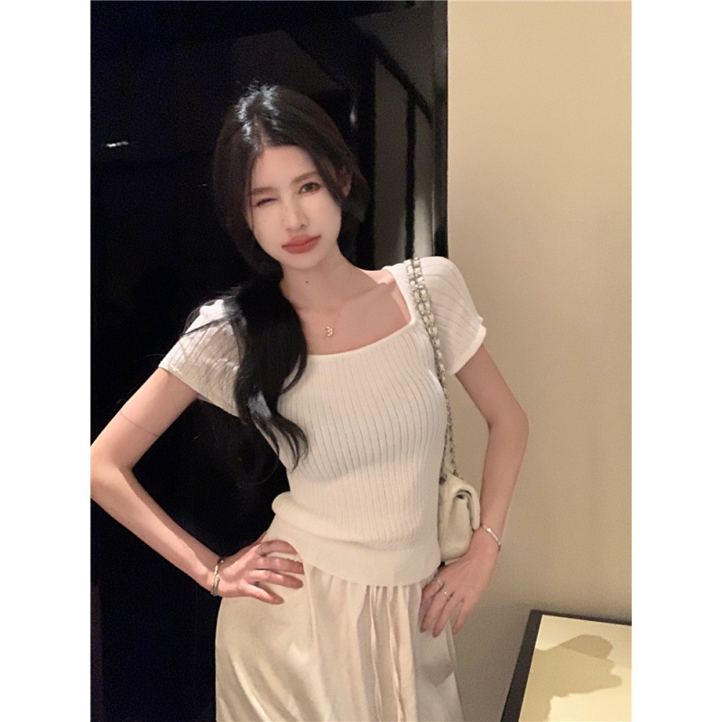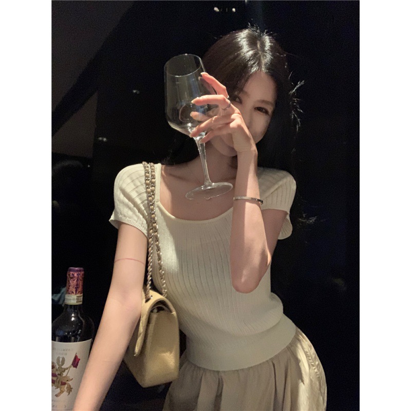 | nameOriginal | Pure Spice Girl Square Collar Short Knitted Shirt Summer All-match Slimming Short-sleeved Top |