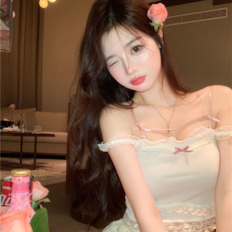 Pure style lace camisole women’s summer new outer wear short bow inner white hot girl top