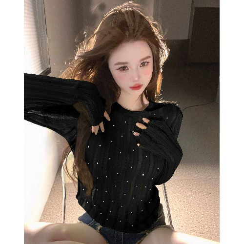 Pure Sweet Hot Girl Thin Hollow Ice Silk Knitted Sun Protection Blouse Top Women’s Design Niche Long Sleeve T-Shirt Summer