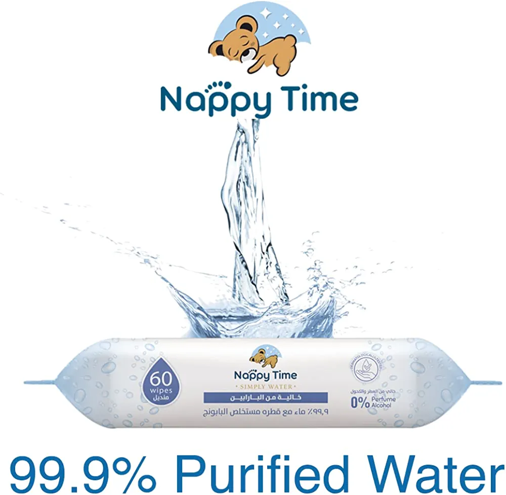 Nappy Time Baby Wipes 99.9% pure water with Chamomile extract – fragrance, alcohol, and paraben free baby wipes, safe for newborn skin, Pack of 8 Pouches +4 Free x60 Sheets, 720 Wipes