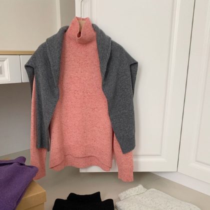 | nameOriginal | Pure Wool Base Shirt 2024 New Women's Autumn and Winter Thickened Point Yarn Knitted Pink Turtleneck Sweater |