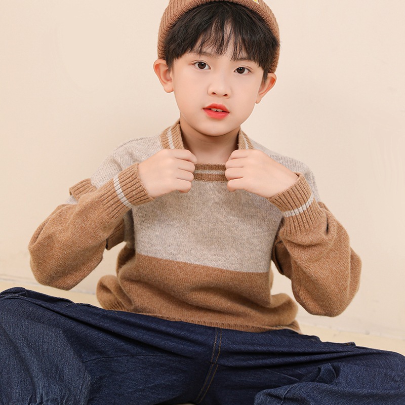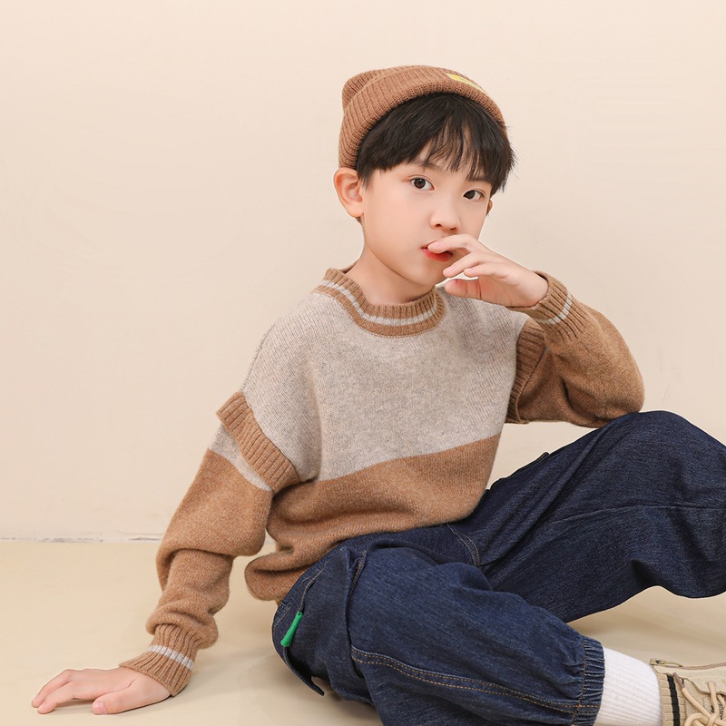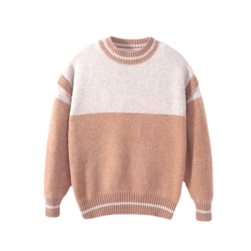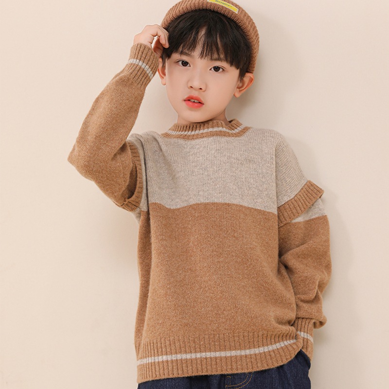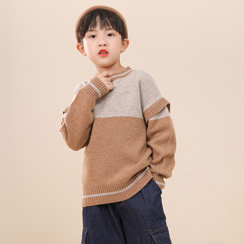 | nameOriginal | Pure wool double color matching new children's casual pullover knitted sweater medium and big children fake two-piece cashmere bottoming top |