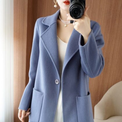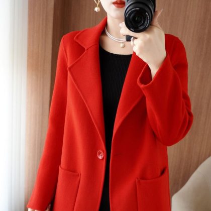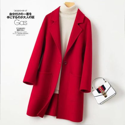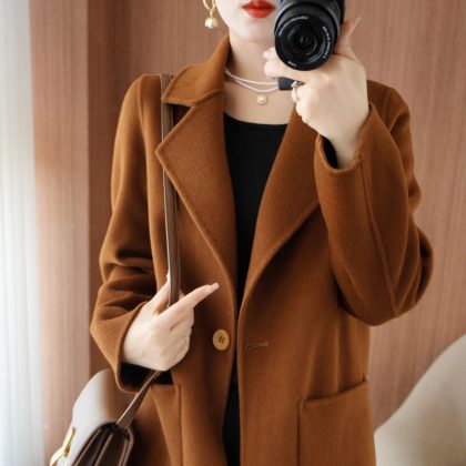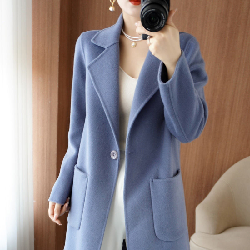 | nameOriginal | Pure wool double-sided cashmere coat Women's Mid-length button winter small slim woolen coat fashion |