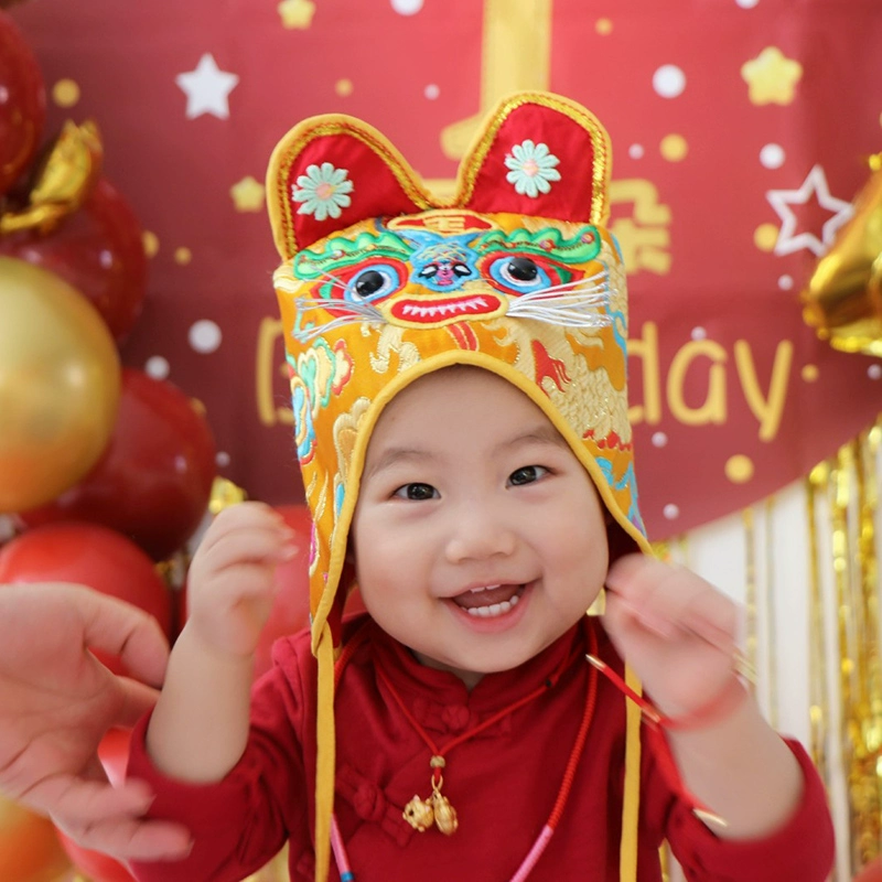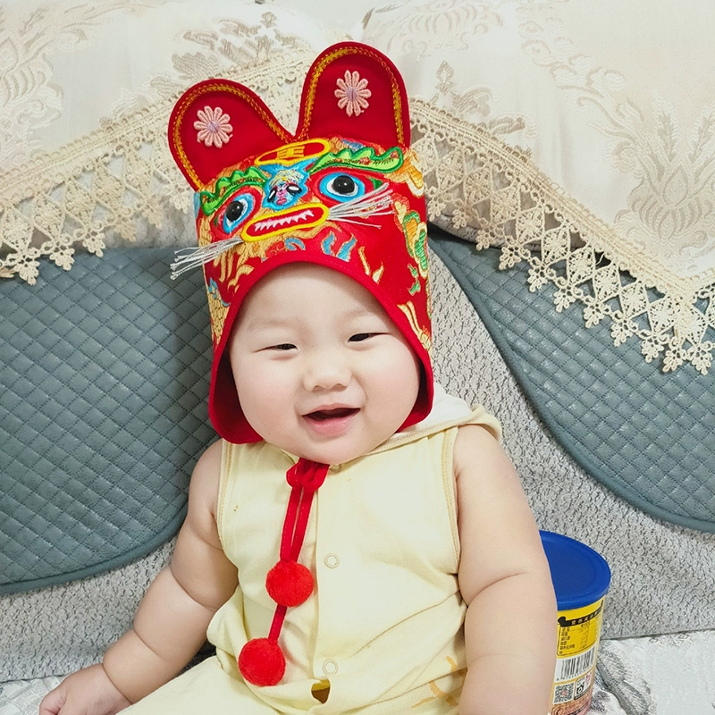 | nameOriginal | Purely handmade spring and autumn full moon one year old Chinese style tiger head hat |