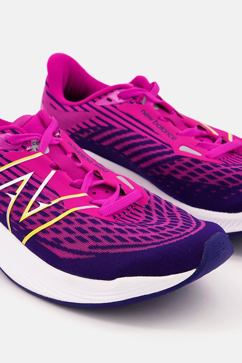 This product is perfect for women and is designed for running. It features a closed toe and a lace-up closure for a secure fit. The insole is removable for added convenience, and the sole is made of latex for durability. The shoe is made of textile material and has an allover print in a purple color family. Please note that the product color may vary slightly due to lighting or monitor settings. It is ideal for sports and other active occasions.